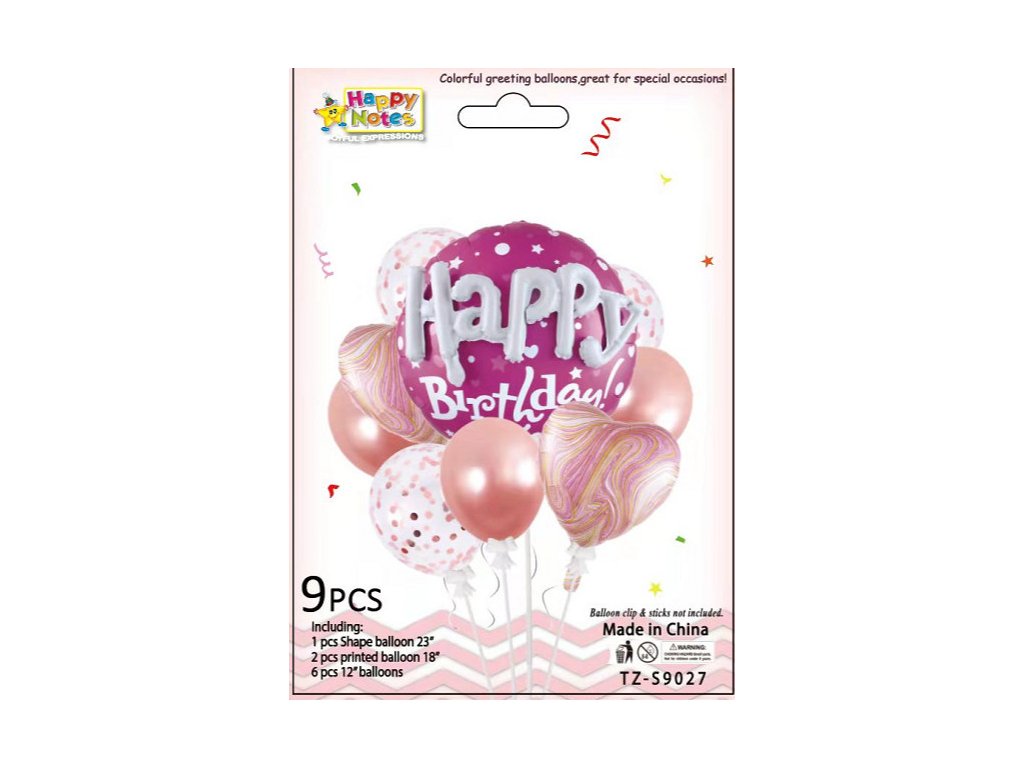 Latexové a fóliové balónky HAPPY BIRTHDAY 12, 18, 23 palců RŮŽOVÉ sada 9 ksDoplňkové parametry