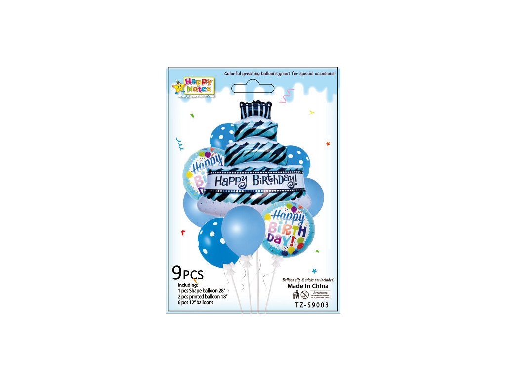 Latexové a fóliové balónky HAPPY BIRTHDAY 12, 18, 28 palců MODRÉ sada 9 ksDoplňkové parametry
