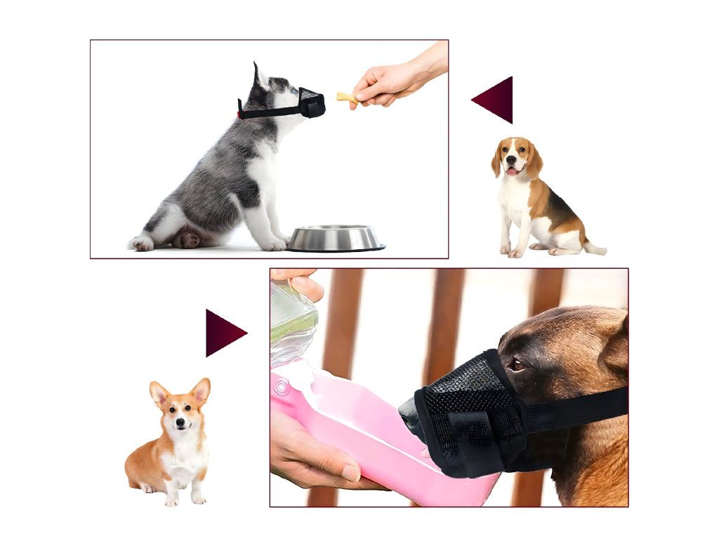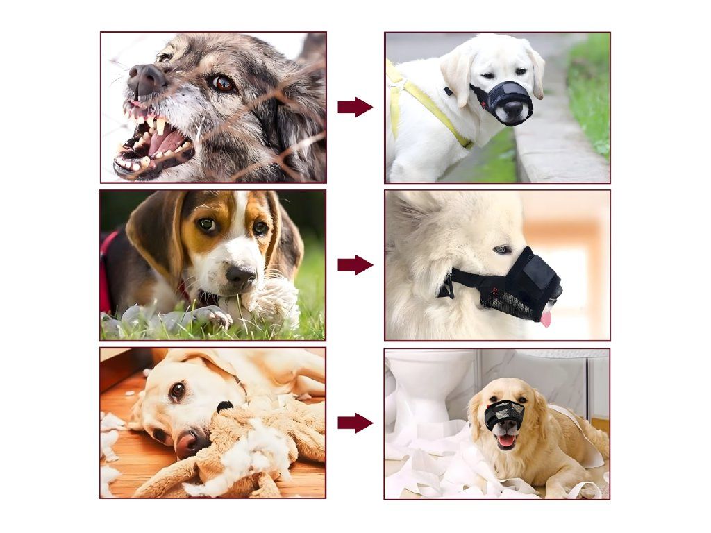 Bezpečnost psa a okolí – chrání před kousáním a uchopením náhodných předmětů.