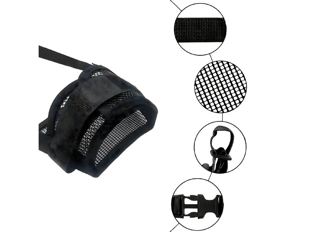 Postarejte se o bezpečnost svého mazlíčka i okolí! Vyberte si pohodlný látkový náhubek se síťkou – komfortní, prodyšný a snadno nastavitelný.