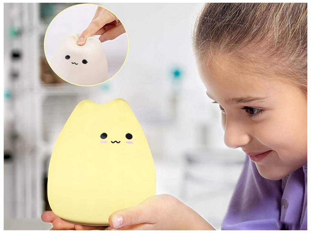 Led noční světlo pro děti, RGB, touch, silikon, kočka