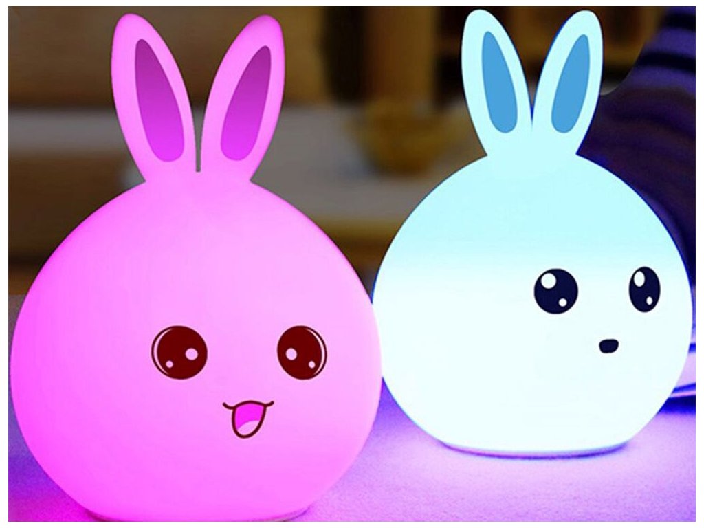 LED noční světlo pro děti, RGB dotykové na USB - králíček