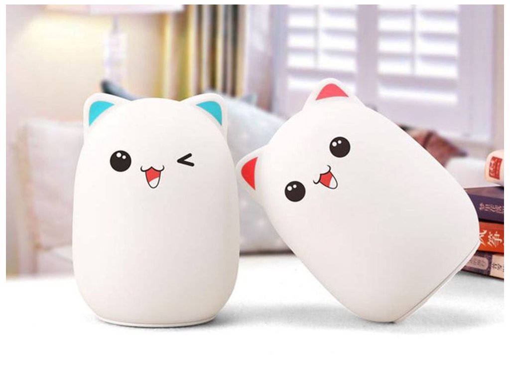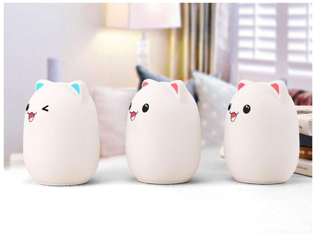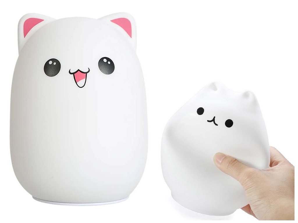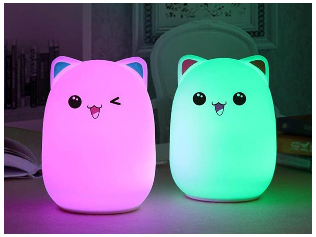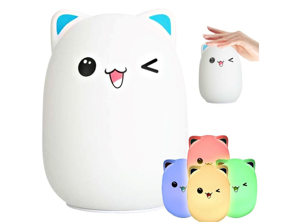 LED noční světlo pro děti, RGB lampa dotyková, na baterie - kočička