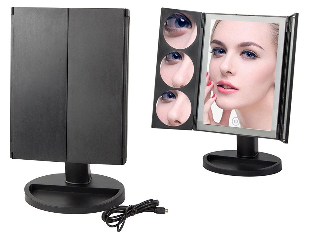 LED osvětlené kosmetické zrcátko pro make-up, zvětšení 3x, 5x, 10x