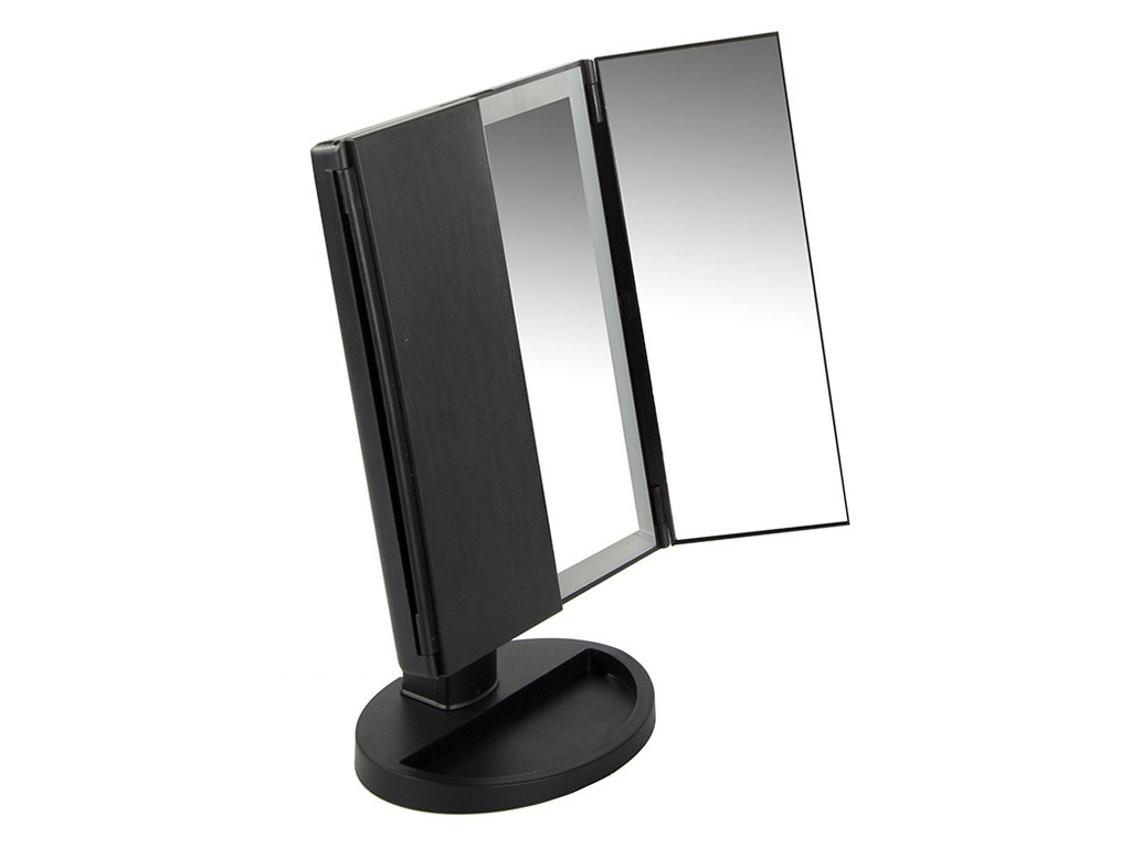Osvětlené zrcátko je velmi praktické a mimořádně užitečné zařízení pro kosmetické ošetření, líčení nebo nasazování kontaktních čoček. Má vestavěné LED podsvícení , ovládané dotykovým spínačem zabudovaným v těle zrcátka.