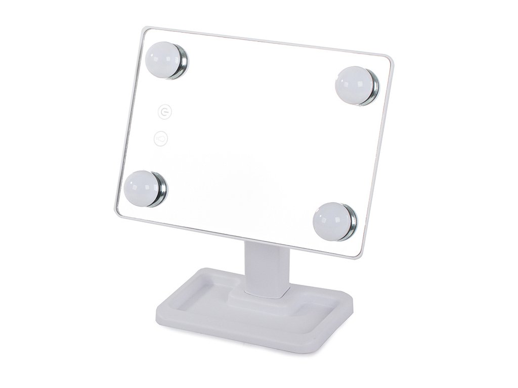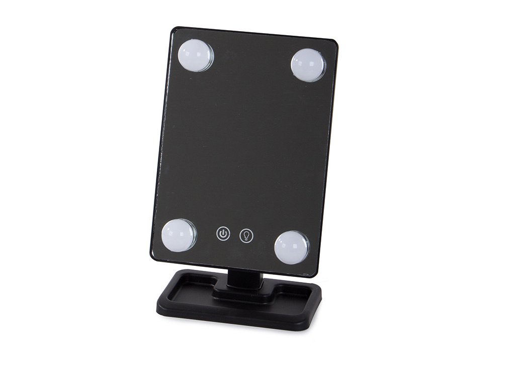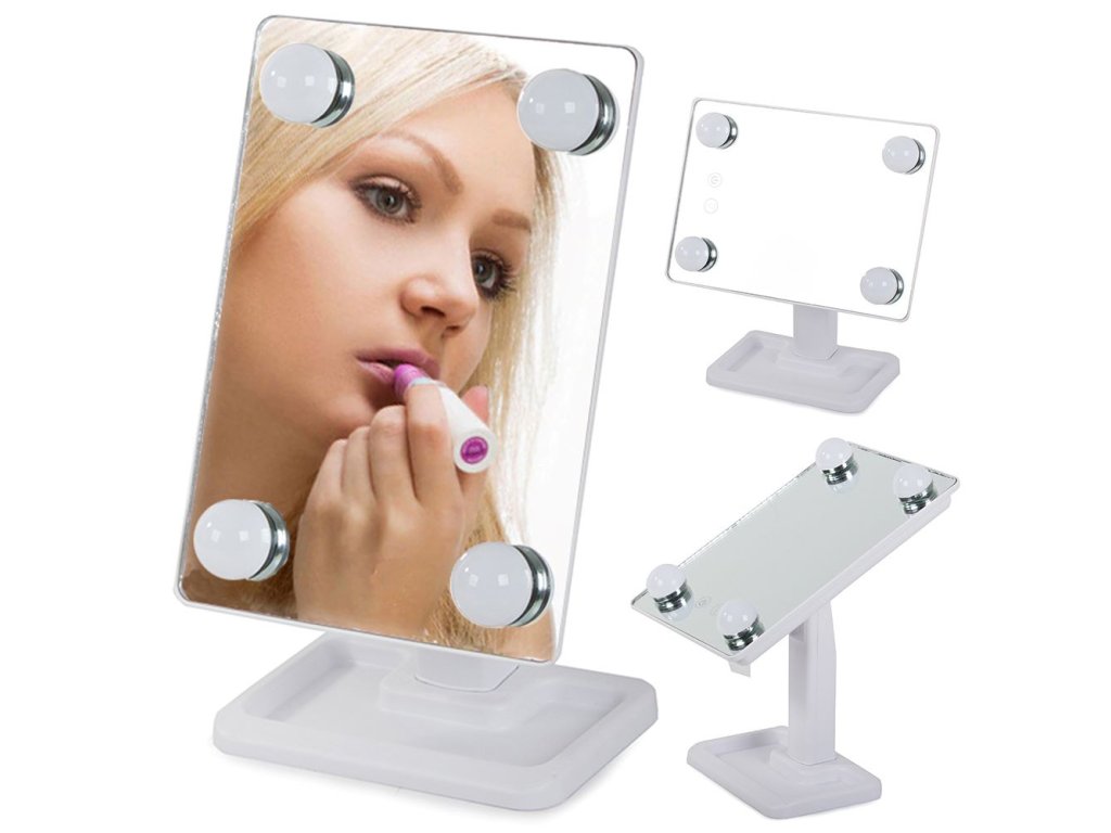 Osvětlené zrcátko je velmi praktické a mimořádně užitečné zařízení pro kosmetické ošetření, líčení nebo nasazování kontaktních čoček. Má vestavěné výkonné LED podsvícení ve čtyřech rozích zrcadla. ovládaný dotykovým spínačem zabudovaným v těle zrcátka.