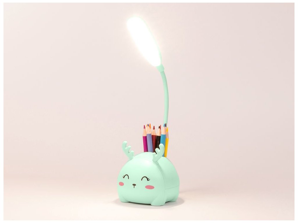LED stolní lampa, zvířátko pro výuku čtení, 3 režimy, USB - tm. zelená