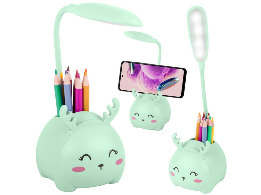 Lampa skvěle poslouží jako organizér na psací potřeby i jako stojánek na telefon.