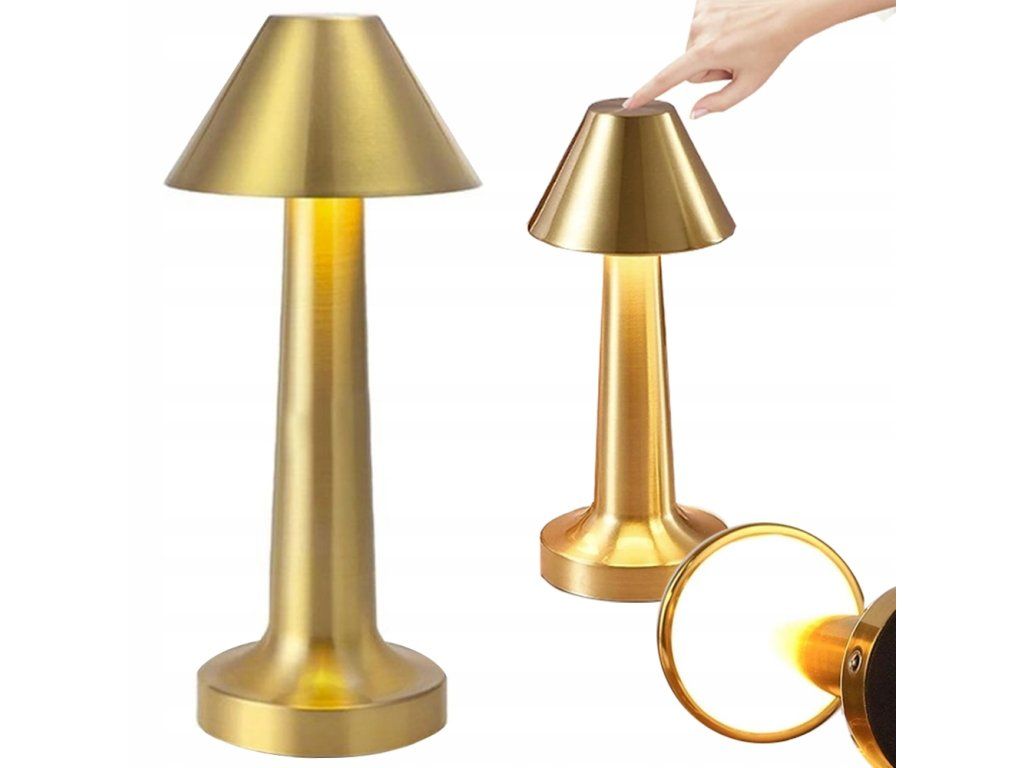 LED stolní lampa dotyková, bezdrátová, zlatá