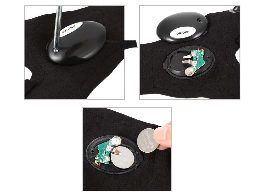 Rukavice jsou vybaveny LED diodami a jsou napájeny baterií CR2016, která je součástí balení.