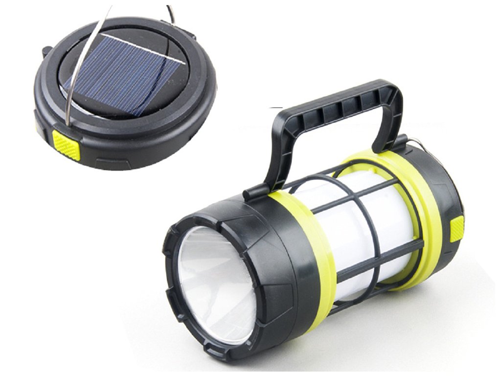 LED turistická svítilna, solární kempingová lampa, dobíjecí baterie