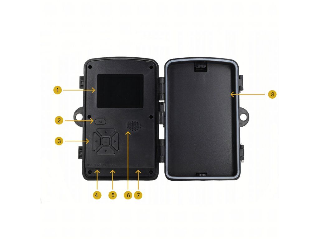 ⚡ Jednoduché ovládání – stačí vložit 8 baterií AA a SD kartu, nastavit kameru a spustit nahrávání.