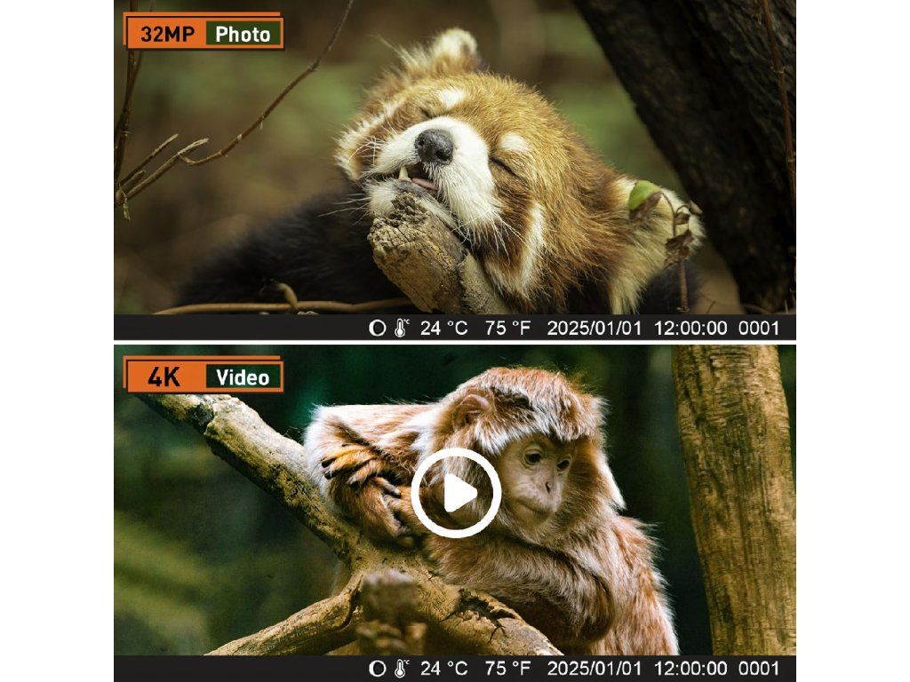Chraňte svůj pozemek a pozorujte přírodu jako profesionál! Tato lesní kamera Full HD 1080p s nočním režimem IR a pohybovým senzorem PIR do 10 m zachytí každý důležitý okamžik – ve dne i v noci.