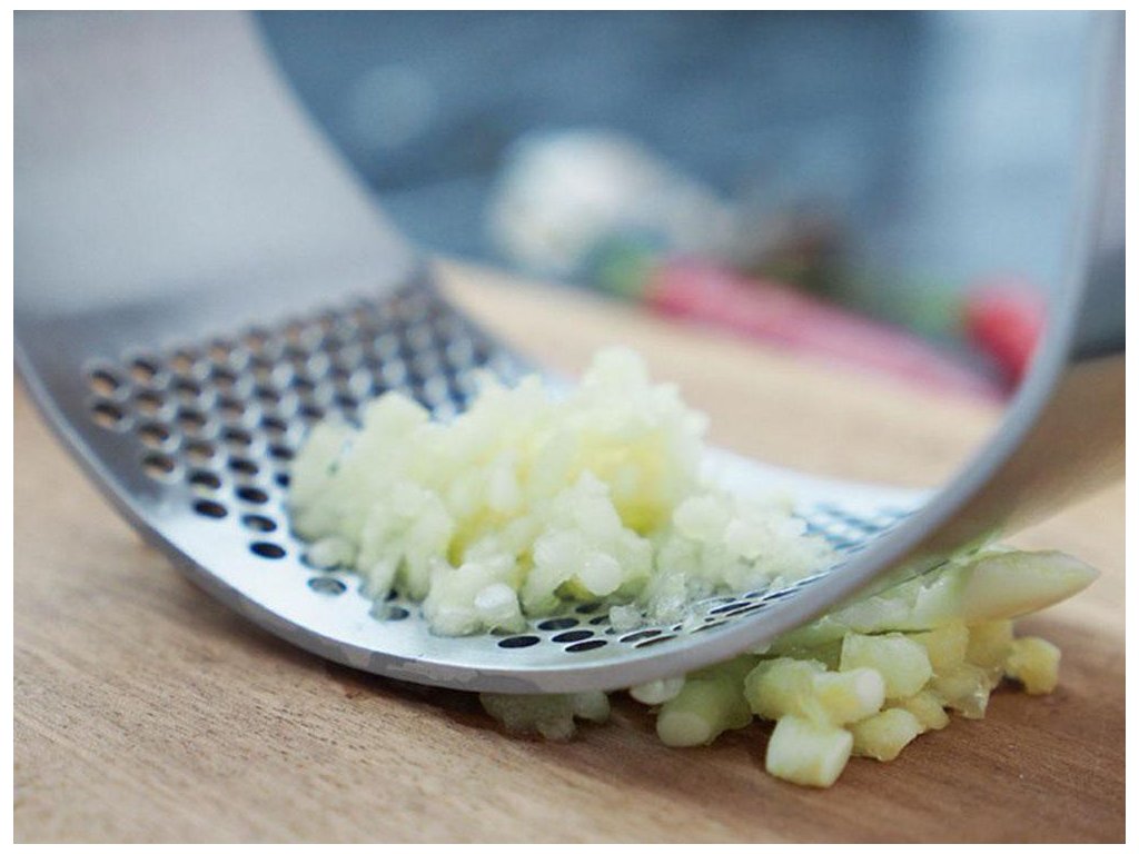 Lze jím drtit i jinou drobnou zeleninu a koření, drcenou dužinu lze snadno sbírat a přidávat do pokrmů.