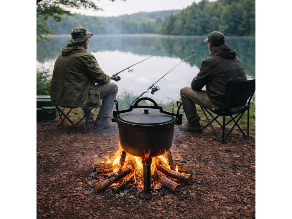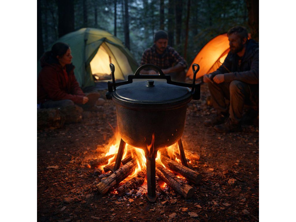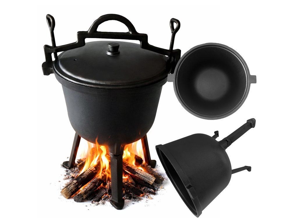 Litinový lovecký kotlík 10 l na ohniště s víkem
