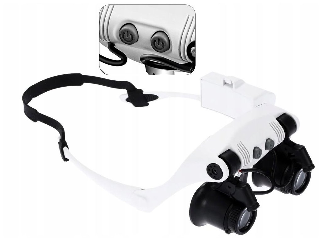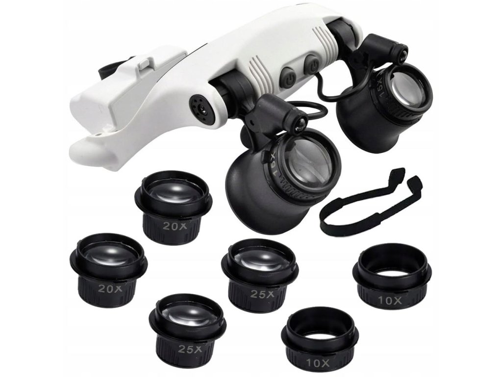 Lupa, hodinářské brýle, lupa na opravy, 2 LED, 25x