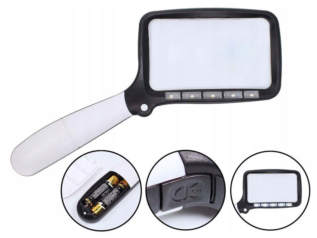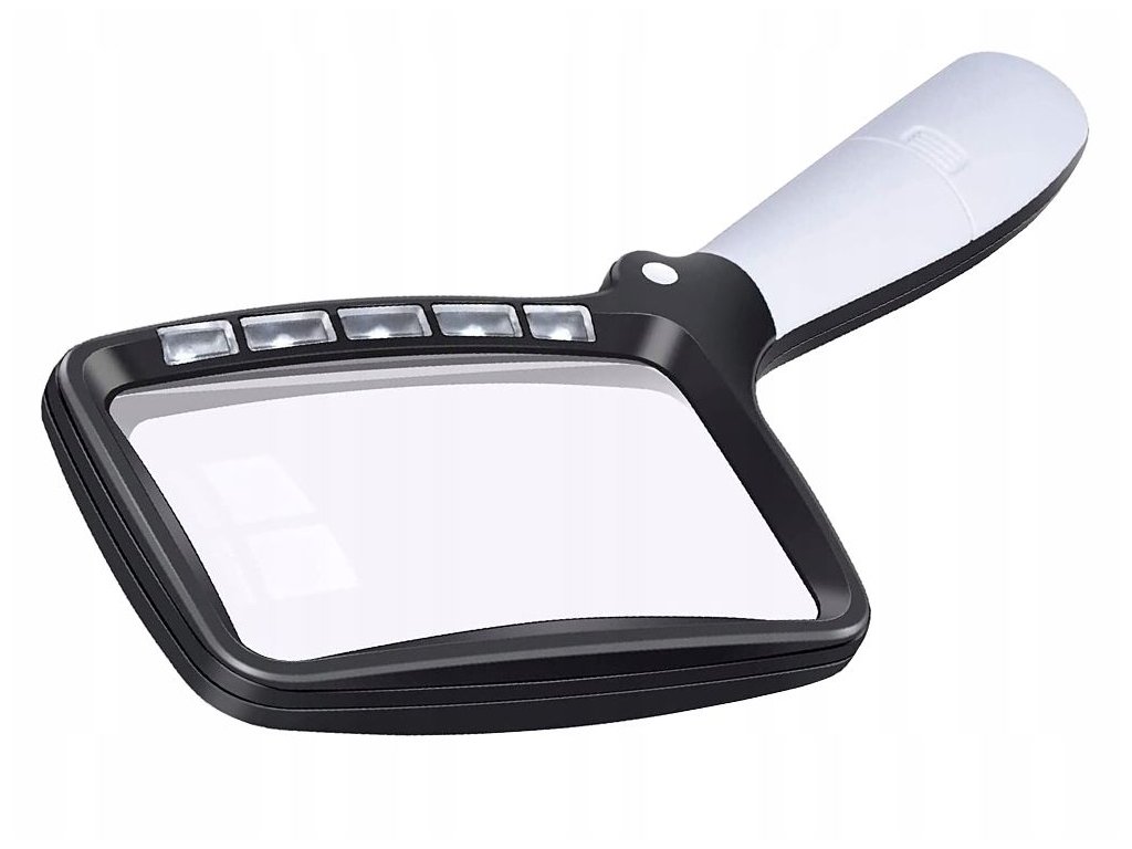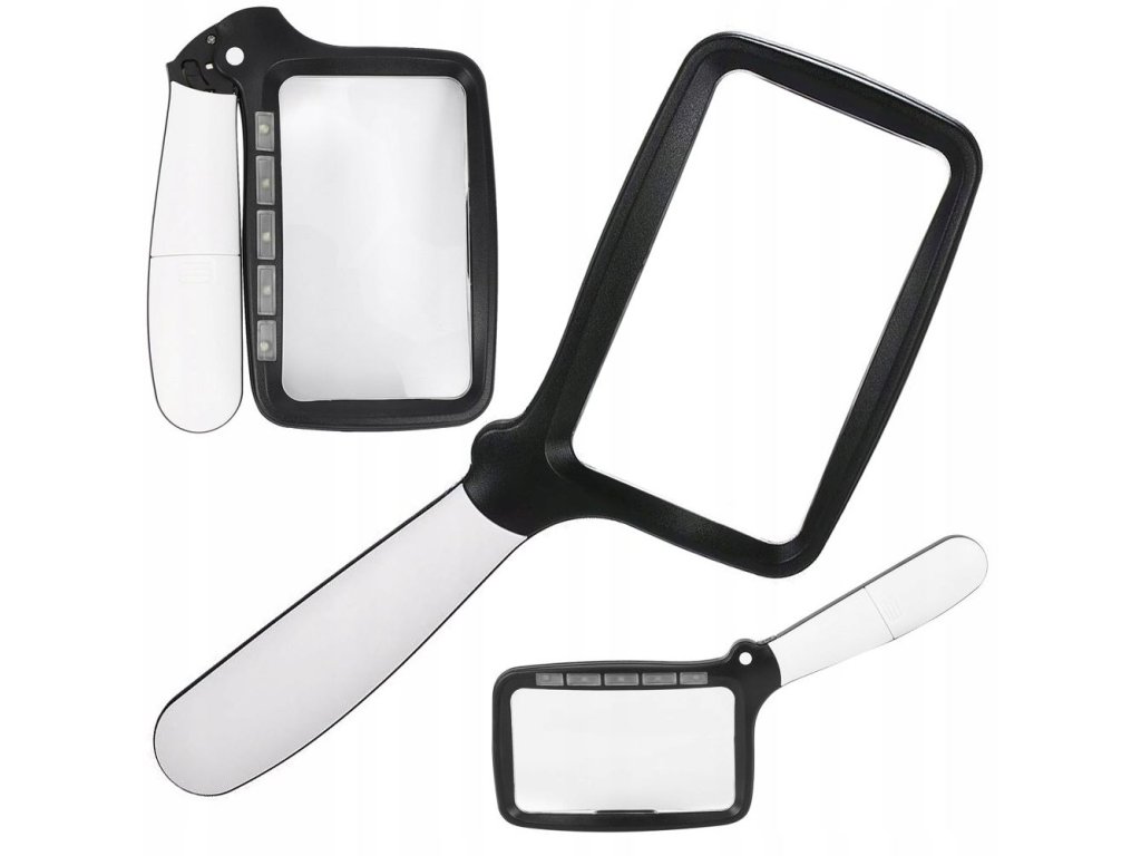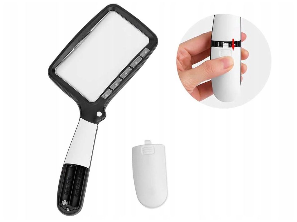 Vybaveno 5 LED diodami, které poskytují dostatečné osvětlení i na tmavých místech. Lupa má dva režimy osvětlení : 100% a 50% Stačí stisknout tlačítko světla jedním prstem.