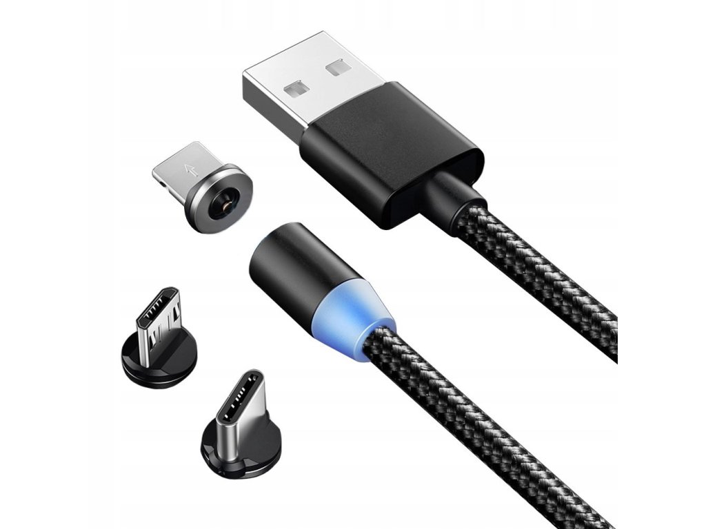 Magnetický nabíjecí kabel 3v1 micro, typ-c, usb, 1m černý