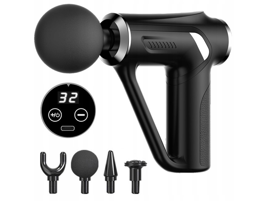 Masážní přístroj byl navržen v ergonomickém tvar u pistole, takže perfektně padne do ruky. Obsahuje 4 různé hroty , z nichž každý je určen pro jinou svalovou partii.