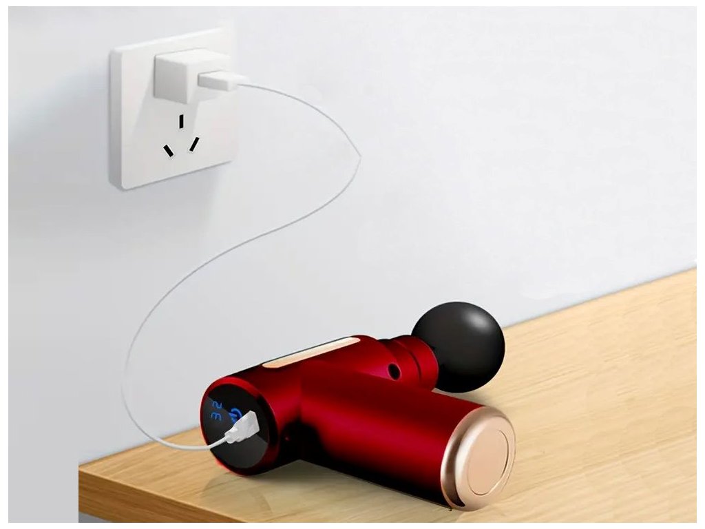 Masážní přístroj byl navržen v ergonomickém tvaru pistole, takže perfektně padne do ruky. Obsahuje 4 různé hroty , z nichž každý je určen pro jinou svalovou partii.