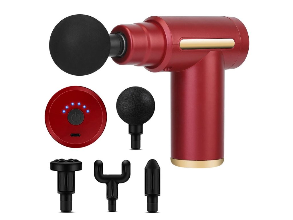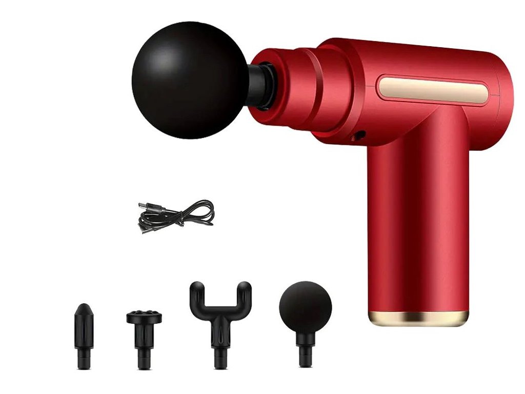 Masážní pistole se 4 nástavci, červená