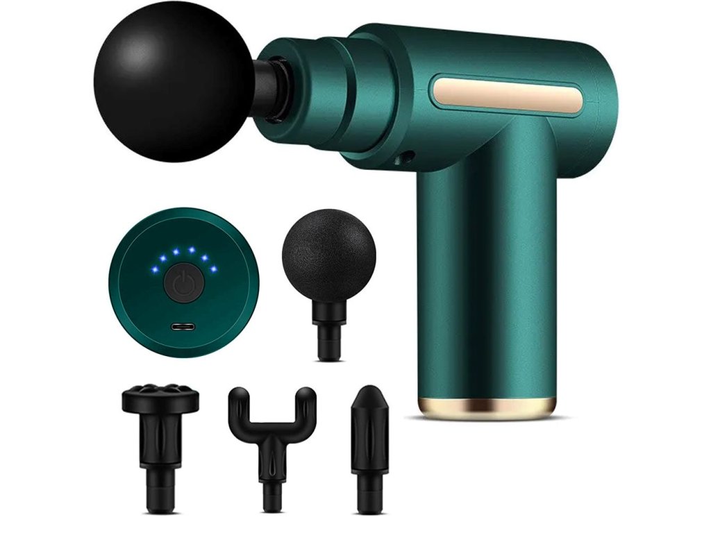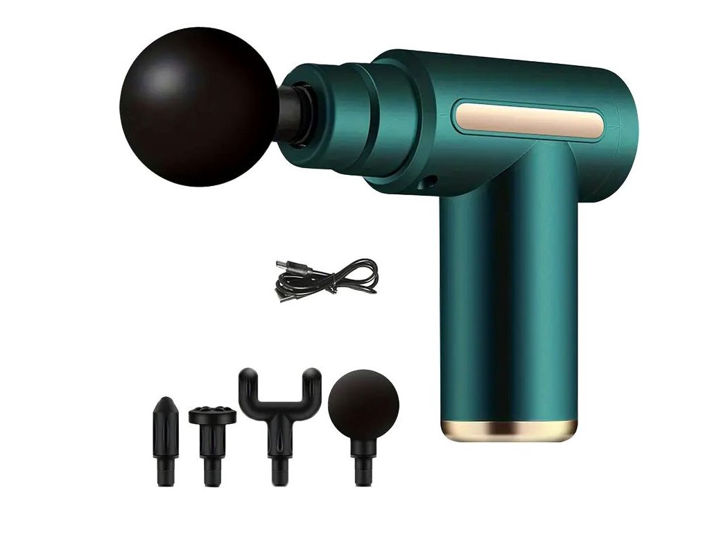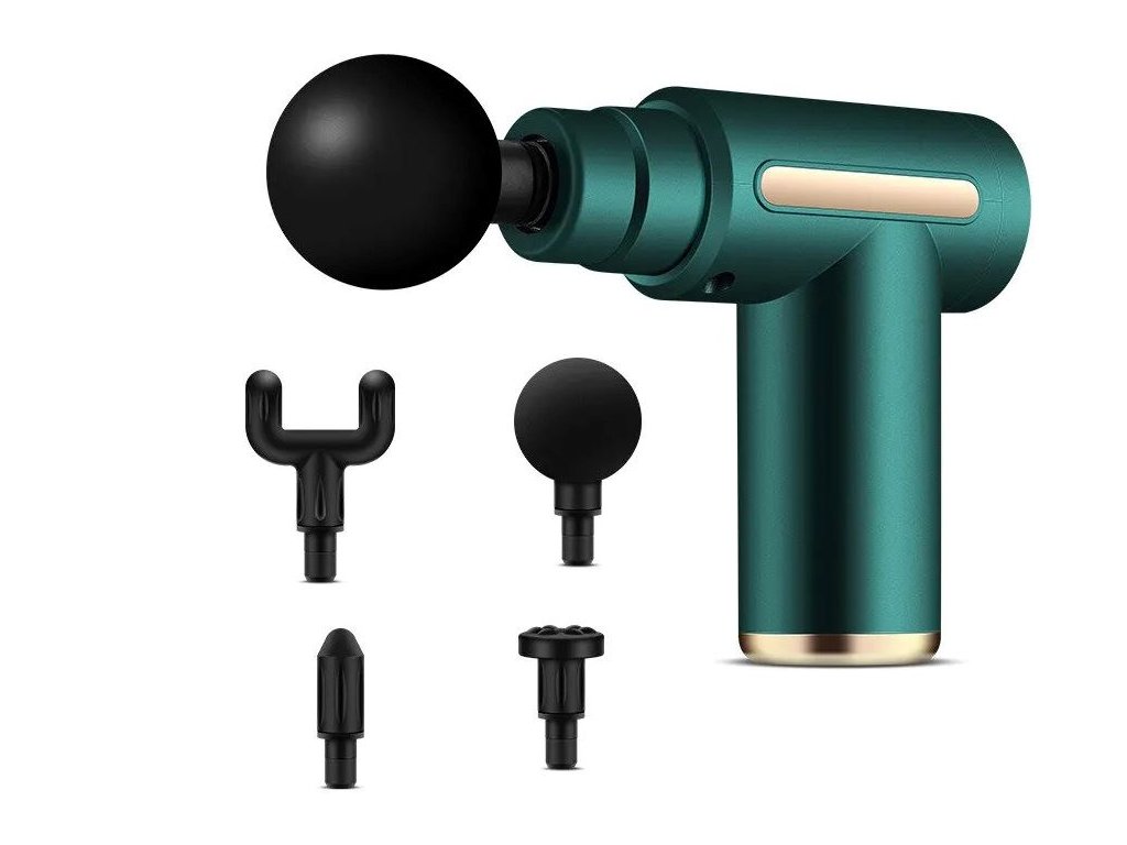 Masážní pistole se 4 nástavci, zelená