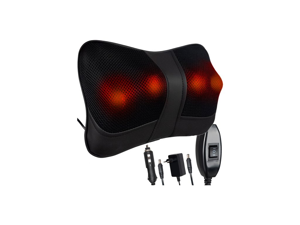 Masážní polštář je vybaven 2 hlavami, každá se 2 masážními míčky. Poskytuje relaxační masáž a uvolnění jakékoli části těla (šíje, páteř, záda, nohy). Přístroj je vyroben z vysoce kvalitní ekokůže a prodyšné mikro síťoviny, díky čemuž je masáž ještě pohodlnější.