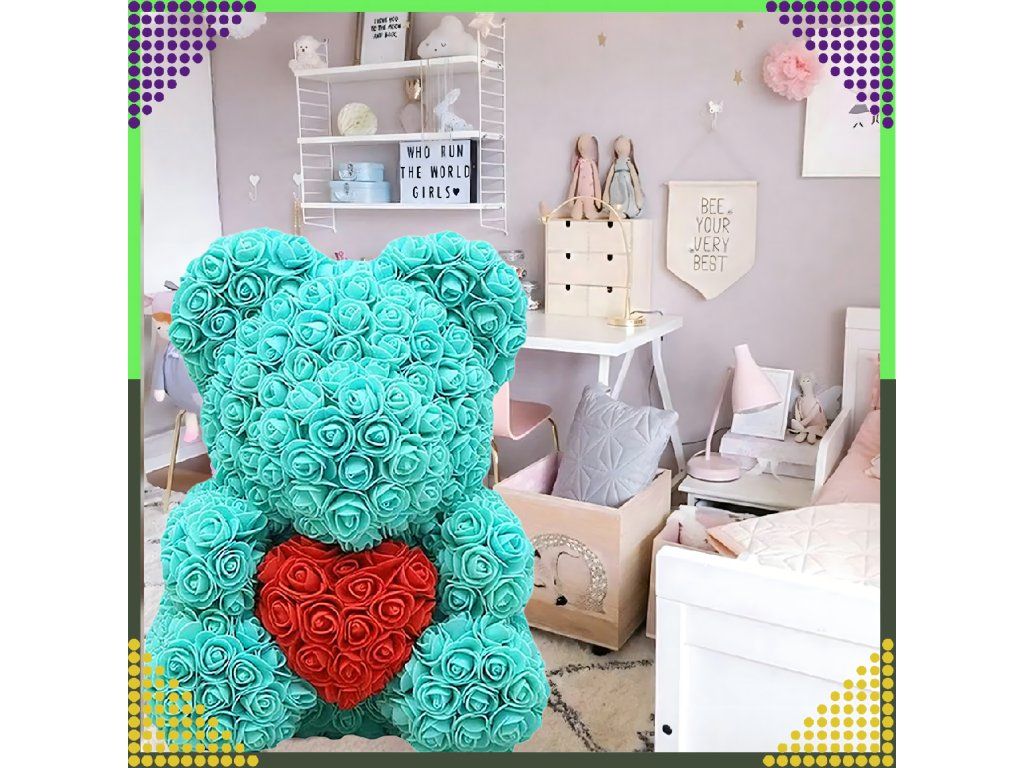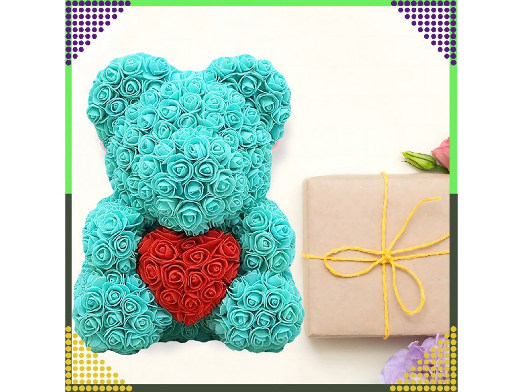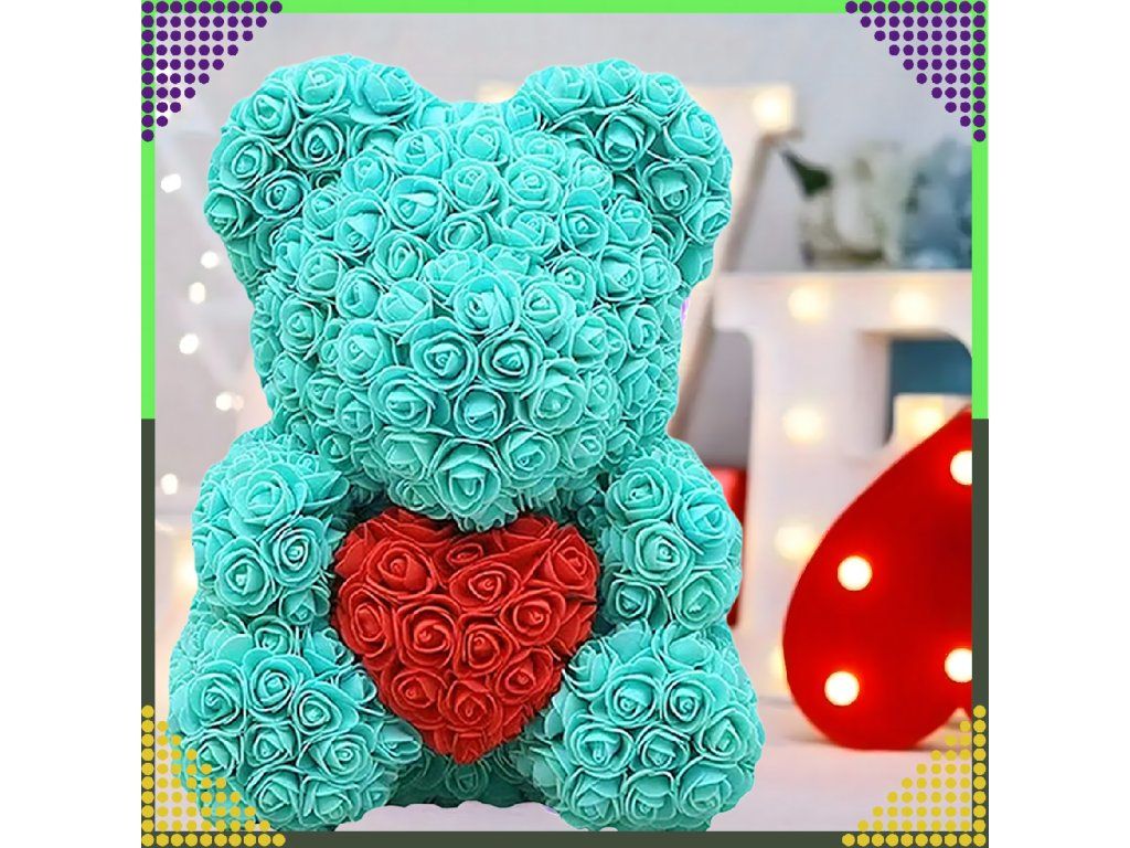 ❤️MEDVÍDEK Z RŮŽÍ DÁREK NA VALENTÝNA PRO MAMINKU PRO HOLČIČKU 40 CM MODRÝ❤️