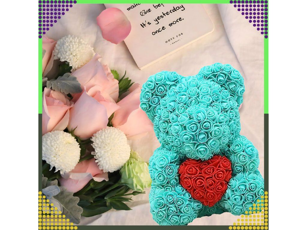Trvanlivost na dlouhá léta: Vyrobený z pěnových růží, které neztrácejí barvu ani tvar, díky čemuž medvídek zůstává krásný po dlouhou dobu.