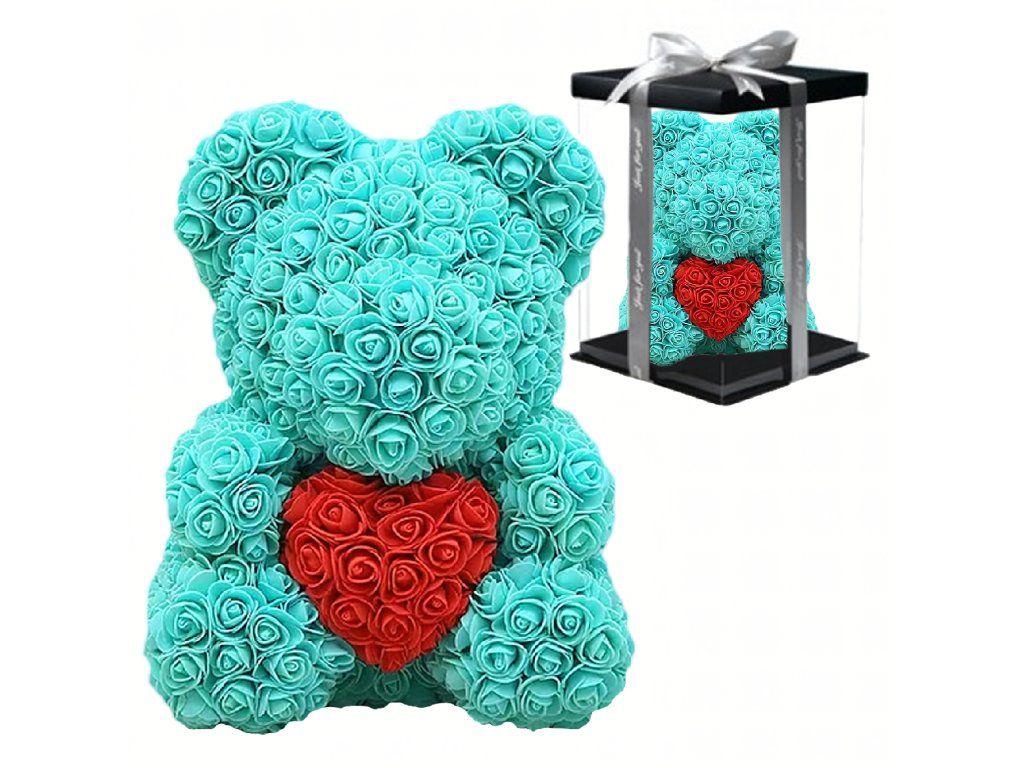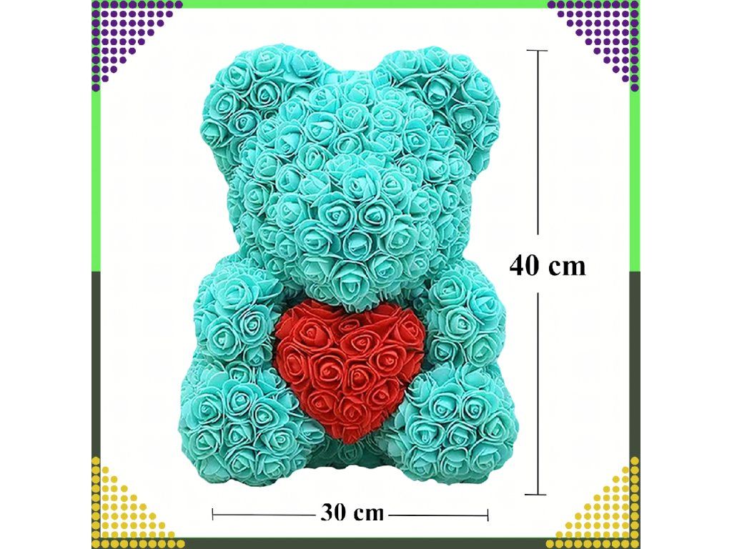Medvídek je vyroben z vysoce kvalitních pěnových růží (PE), které jsou odolné, měkké a vypadají jako skutečné květiny.