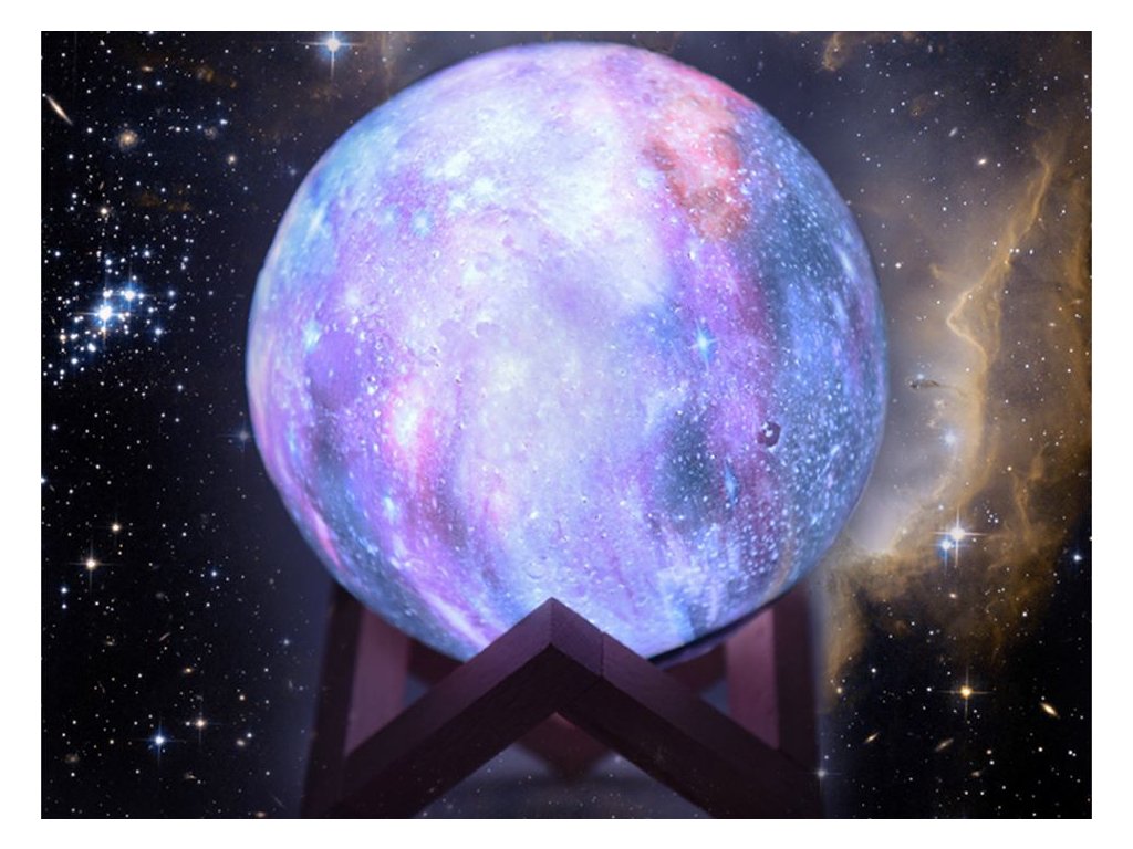 Noční lampa v atraktivním tvaru hvězdy. Vytvoří kouzelnou atmosféru v místnosti , například v ložnici, dětském pokoji nebo obývacím pokoji. Byl vyroben ve 3D , díky čemuž velmi realisticky reprodukuje hvězdu. Po zapnutí vydává lampa atmosférické světlo v libovolné barvě dle vašeho výběru. Díky dálkovému ovladači, který je součástí sady, si můžeme vybrat libovolnou variantu osvětlení našeho míče.