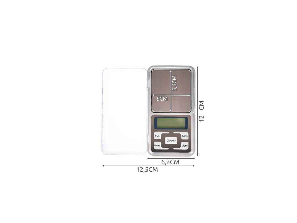 - SPECIFIKACE – materiál: materiál: ABS, nerezová ocel, pryž; měrné jednotky: g, tl, oz, ct, gn; rozsah vážení: do 200 g; přesnost vážení: do 0,01 g; přídavná funkce: TARE; displej: podsvícený; automatické vypnutí: po 3 minutách; napájení: 2 x AAA baterie (součástí balení); rozměry: 12 x 6,2 x 2 cm, hmotnost: 0,093 kg; hmotnost balení: 0,108 kg.