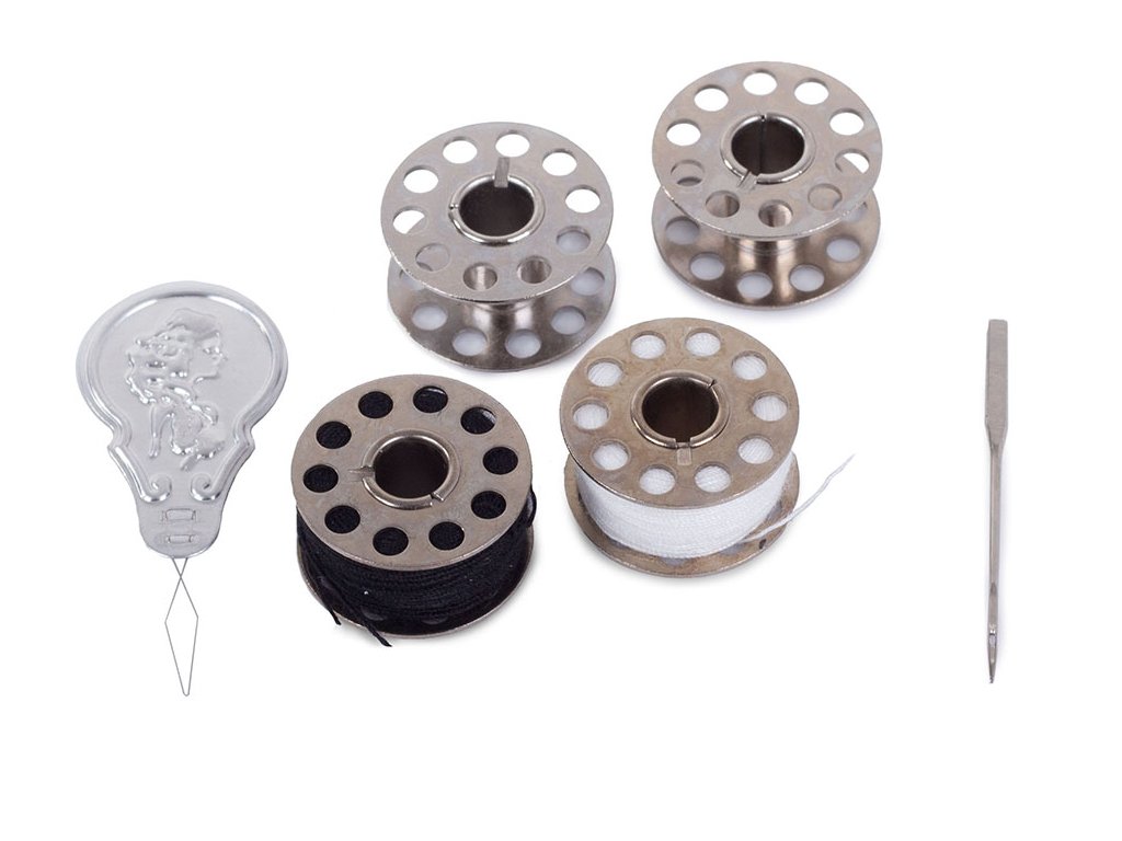 ☑️ 4 x špulka nití (3 x bílá, 1 x černá)
