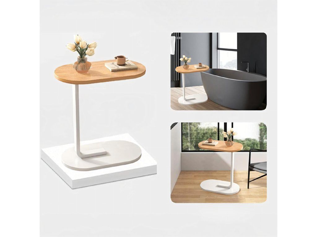 Ano, díky tvaru písmene C se stolek snadno vejde pod většinu standardního nábytku – doporučujeme zkontrolovat výšku rámu pohovky (min. cca 5–7 cm).
