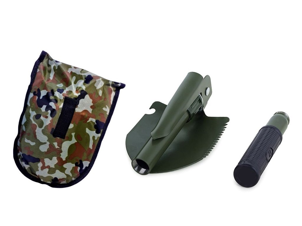 Lopata je skládací a lze ji rychle a snadno složit a zabere velmi málo místa.