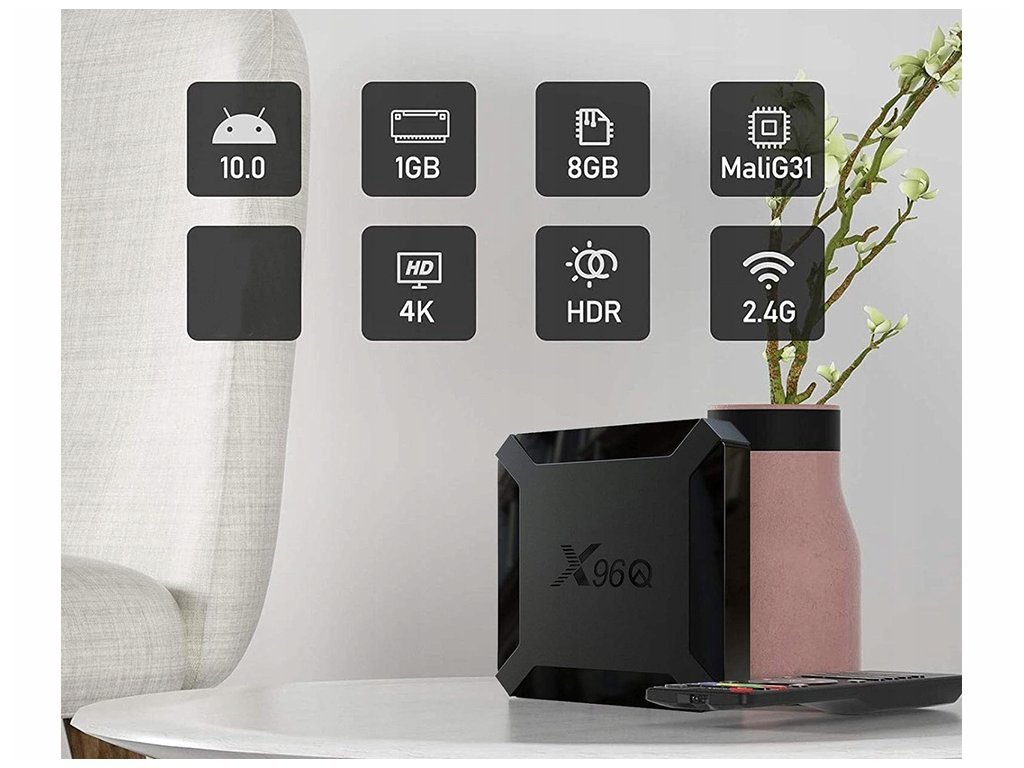 Představujeme X96Q Smart TV Box – moderní multimediální přehrávač s operačním systémem Android 10, který okamžitě promění váš klasický televizor na výkonné centrum domácí zábavy. Sledujte své oblíbené filmy, seriály nebo videa z YouTube, přistupujte k aplikacím, hrám a streamovacím platformám přímo z televizní obrazovky.