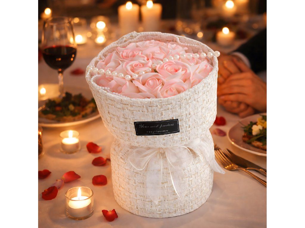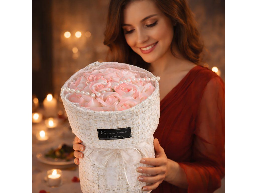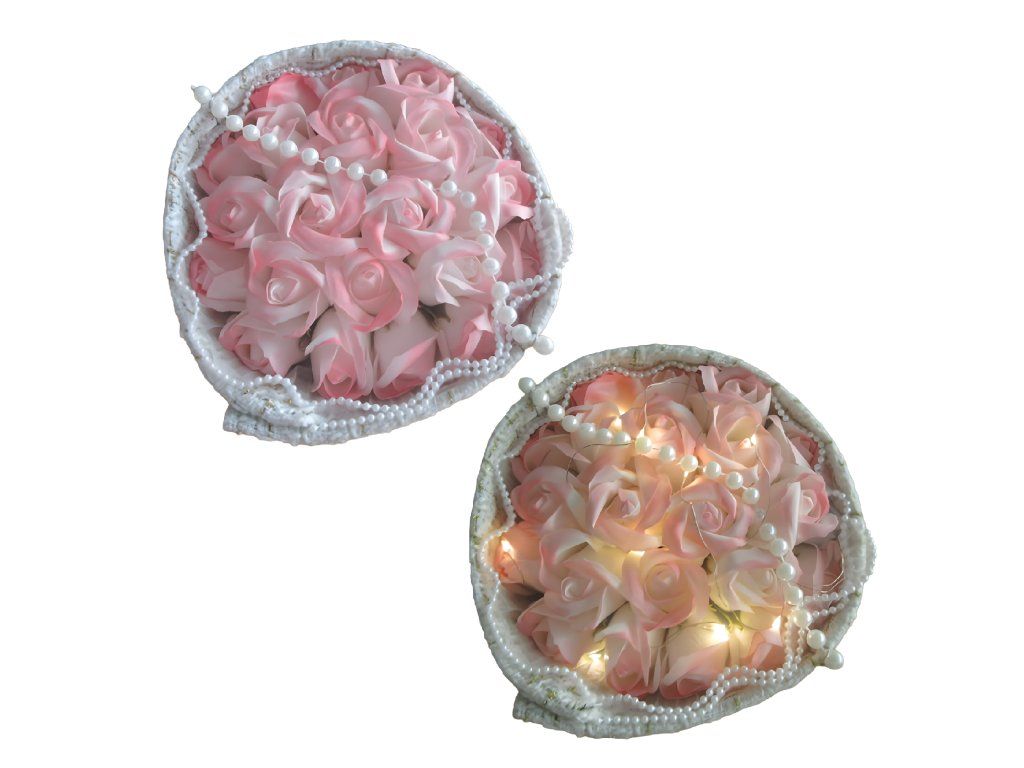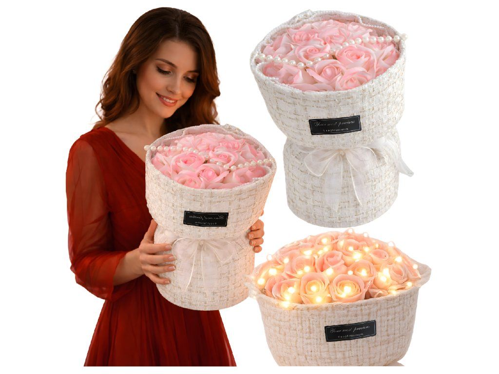 Mýdlové růže růžové LED sada na Valentýna, Den žen, dárek k narozeninám