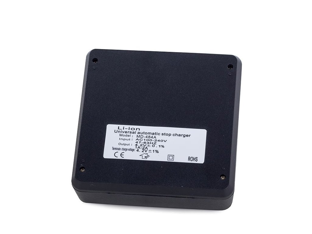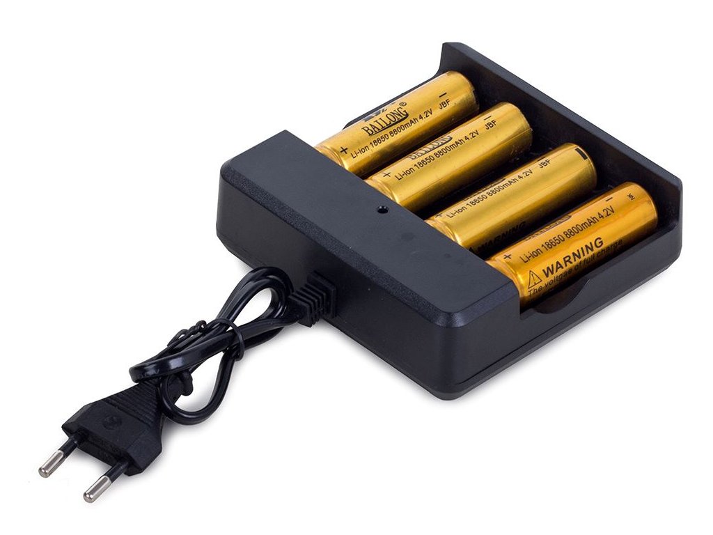 Čtyřnásobná nabíječka nabízí možnost nabíjet 1, 2, 3 nebo 4 články současně. Po nabití článků se nabíječka automaticky vypne. Je vybavena LED diodou, která indikuje stav nabití článku.