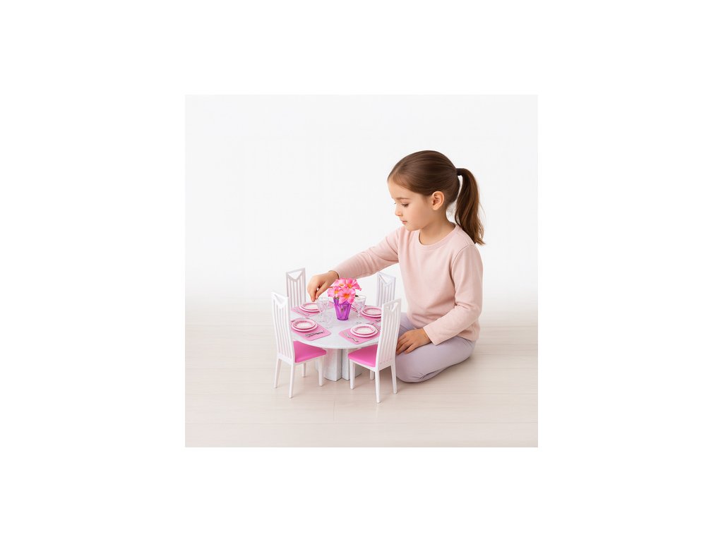 Hrajte si jako v opravdovém domečku pro panenky – krásný nábytek do domečku pro panenky, který podněcuje fantazii a po několika použitích se nerozpadne! Odolný 43dílná jídelní sada se stolem, židlemi a nádobím je zárukou dlouhé, kreativní zábavy bez obav z poškození - perfektní dárek, který je zároveň zábavný a vzdělávací.
