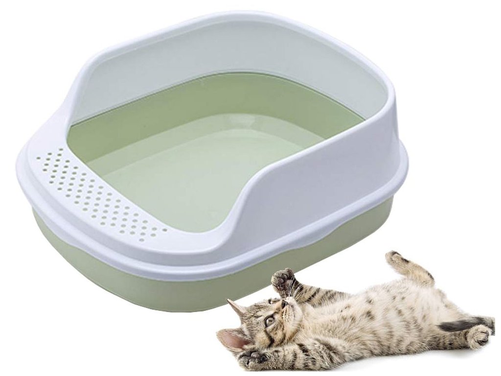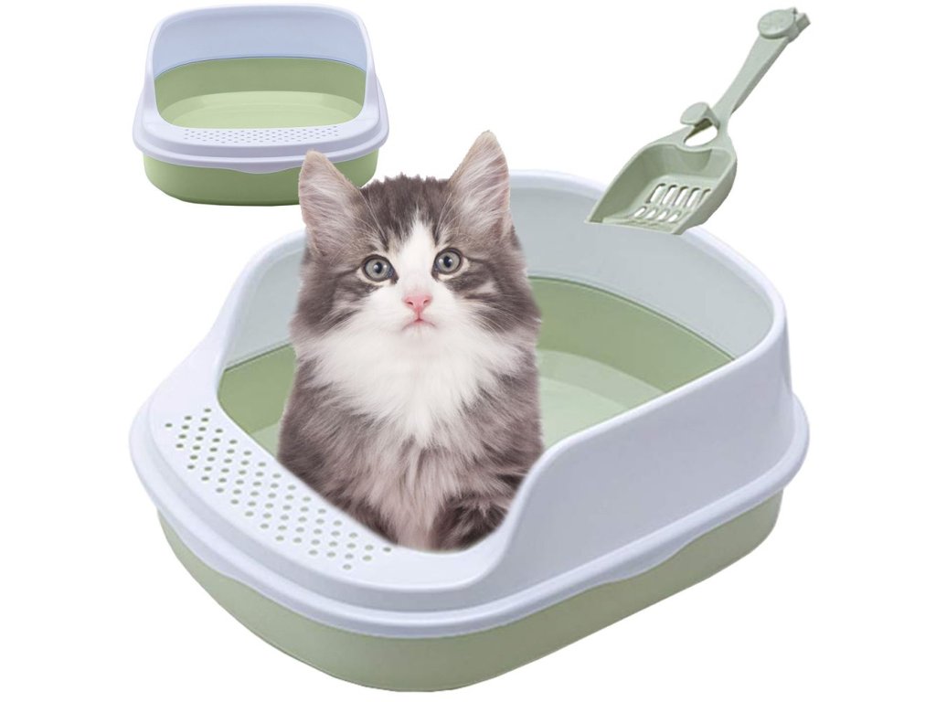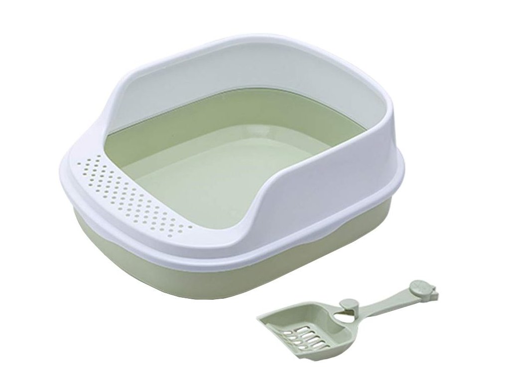 Nádoba na stelivo pro kočky, toaleta pro kočky + lopatka, zelená