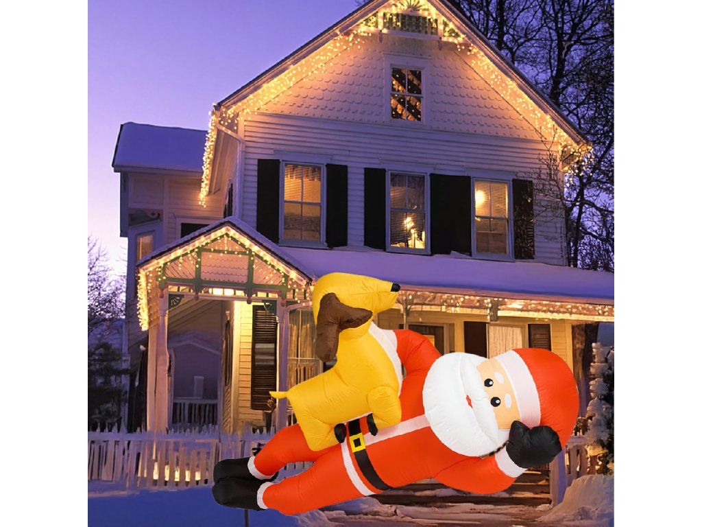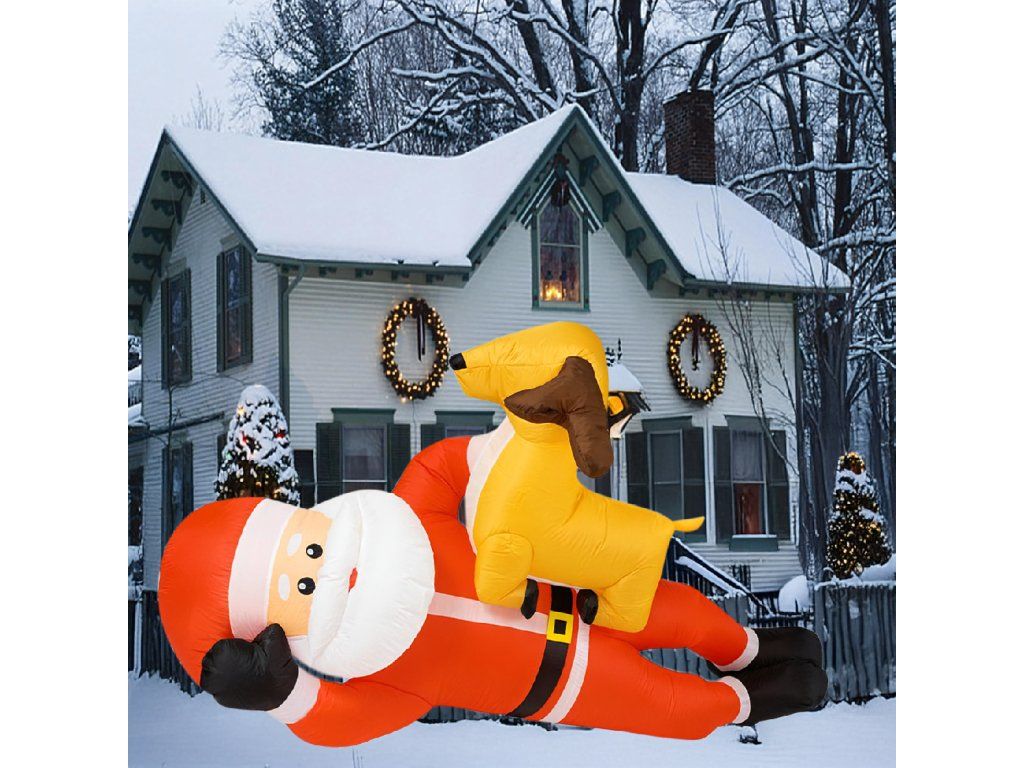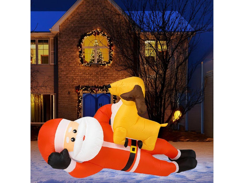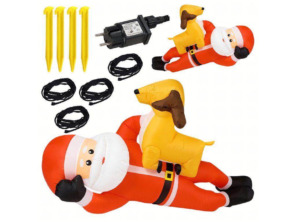 Nafukovací Santa Claus s sobem 210 cm Vánoční LED osvětlení XXL