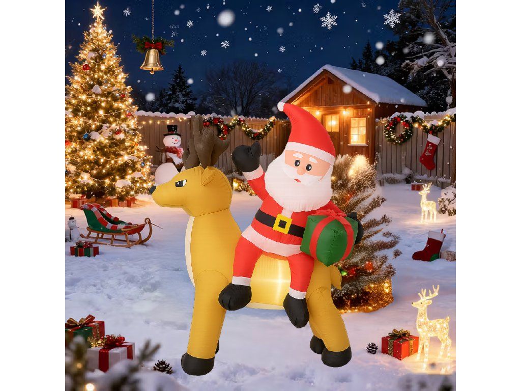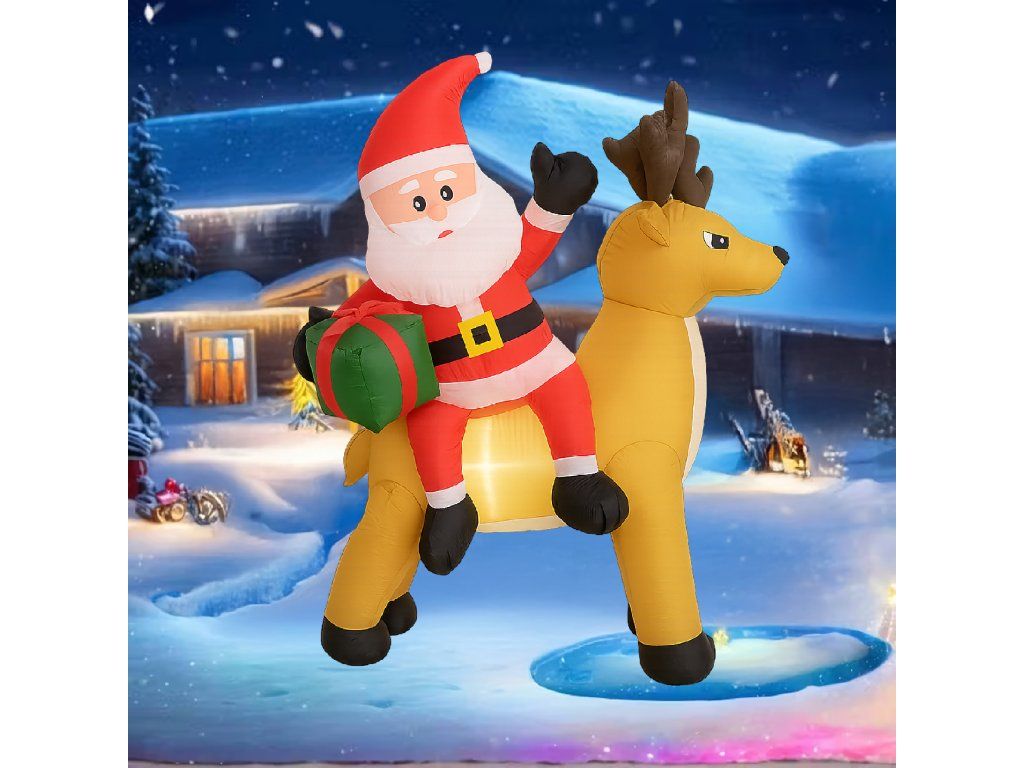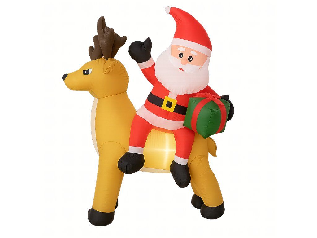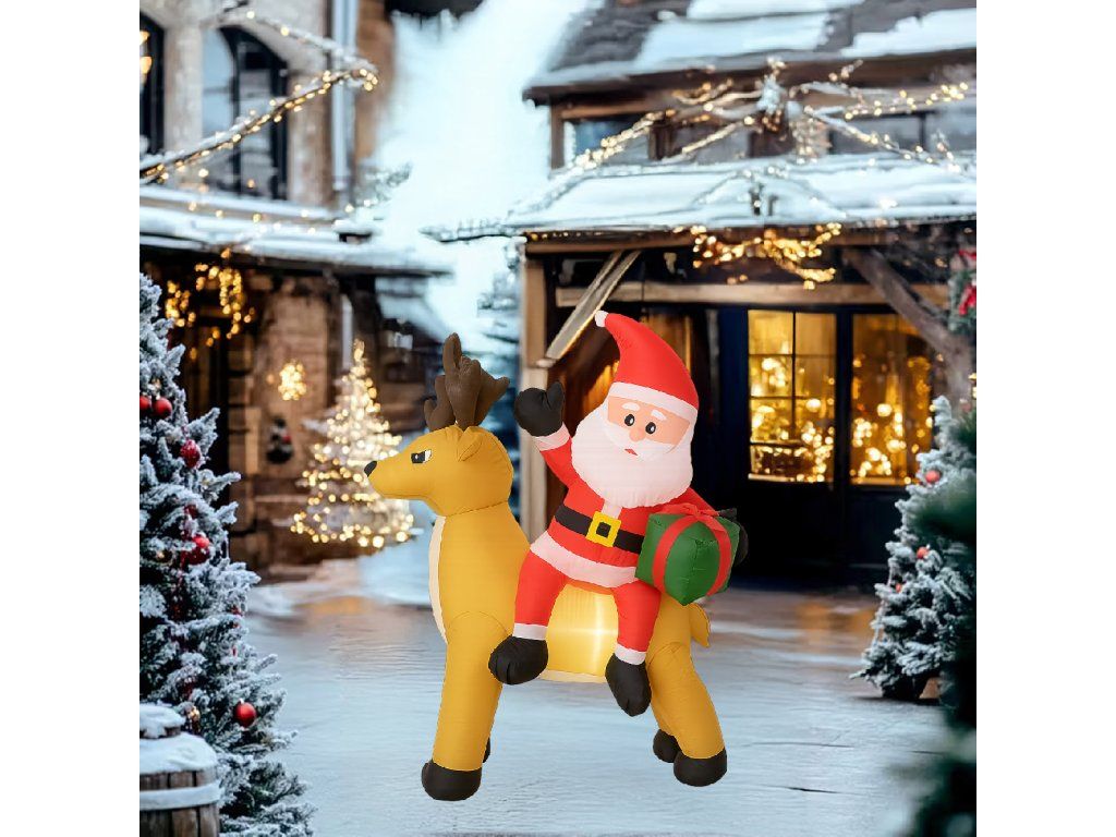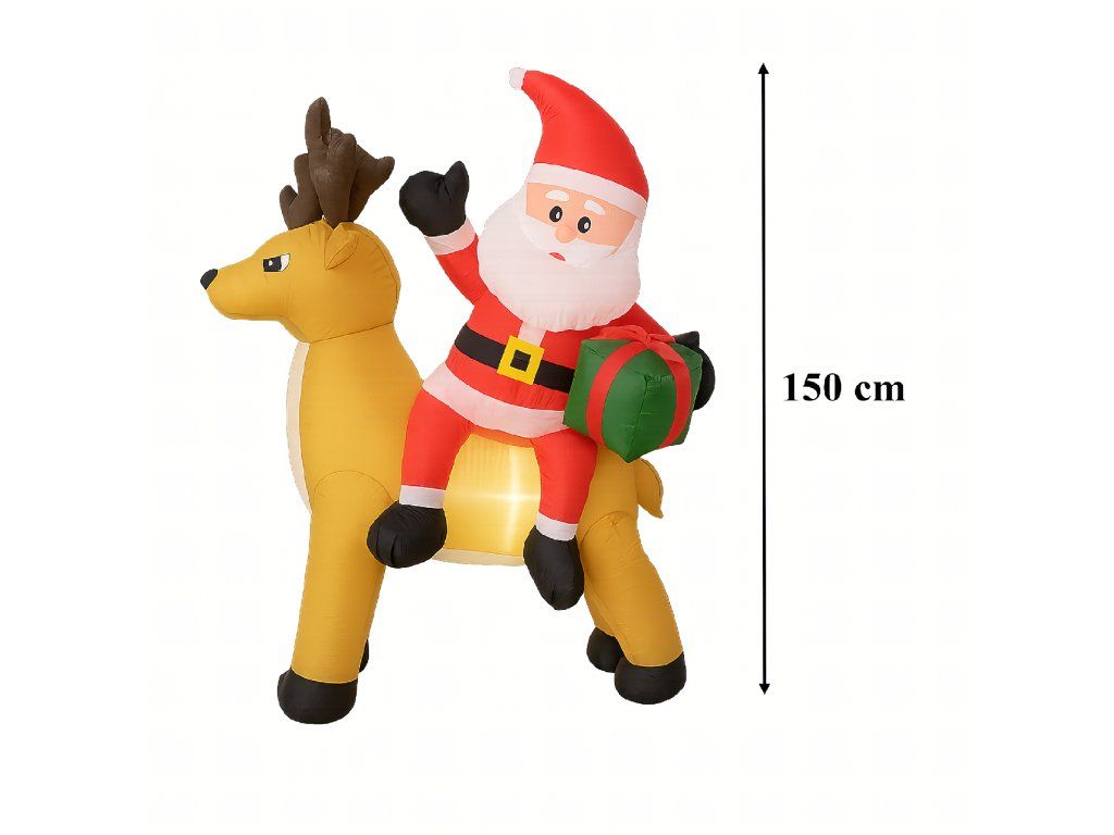 Nafukovací Santa Claus s sobem 1,5 m s LED osvětlením je ideální způsob, jak vytvořit vánoční atmosféru – efektní, snadno ovladatelný a odolný vůči zimním podmínkám ✨