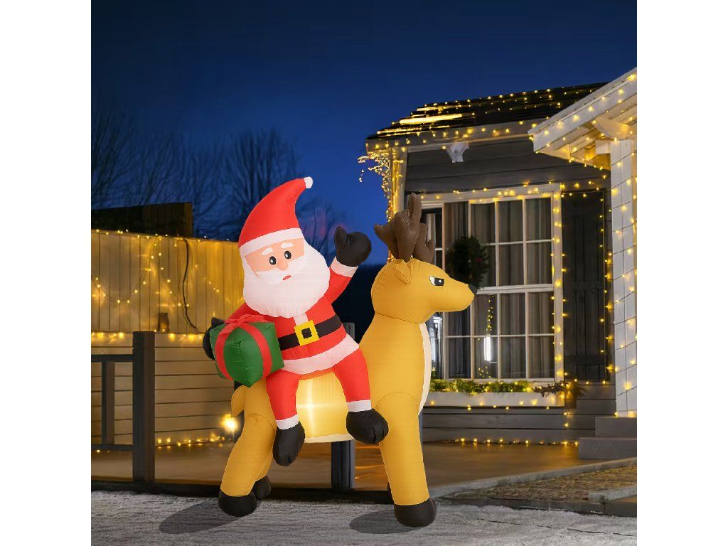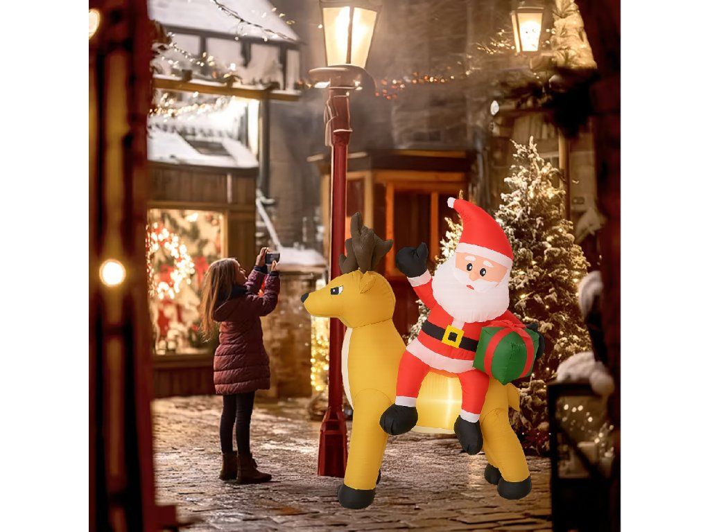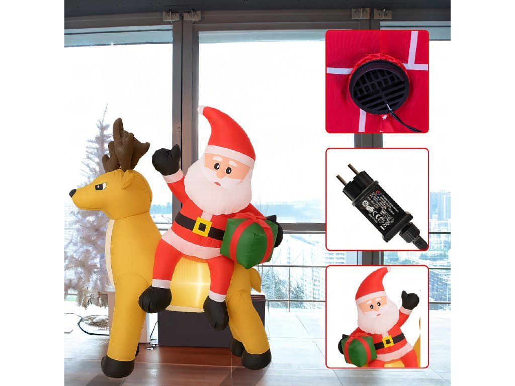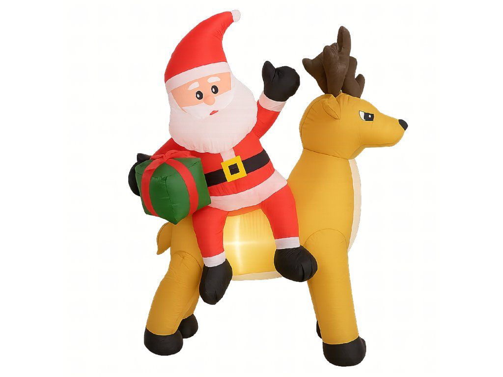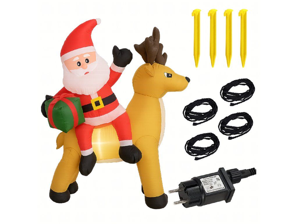 Nafukovací Santa Claus s sobem 1,5 m s LED osvětlením je ideální způsob, jak vytvořit vánoční atmosféru – efektní, snadno ovladatelný a odolný vůči zimním podmínkám ✨