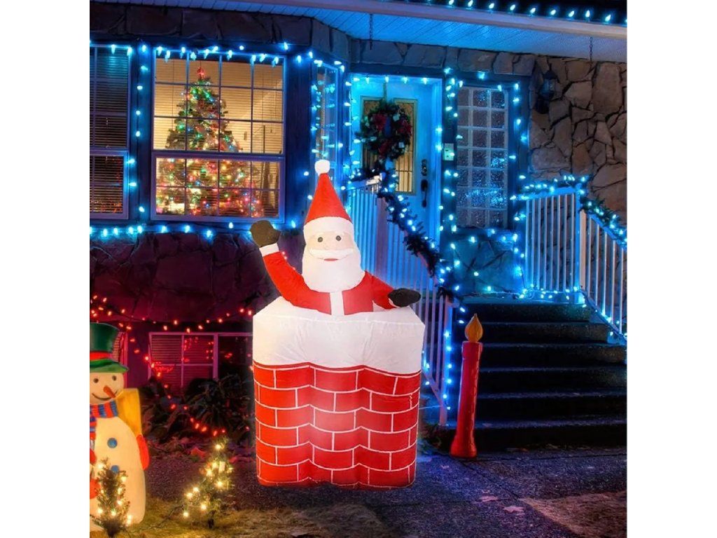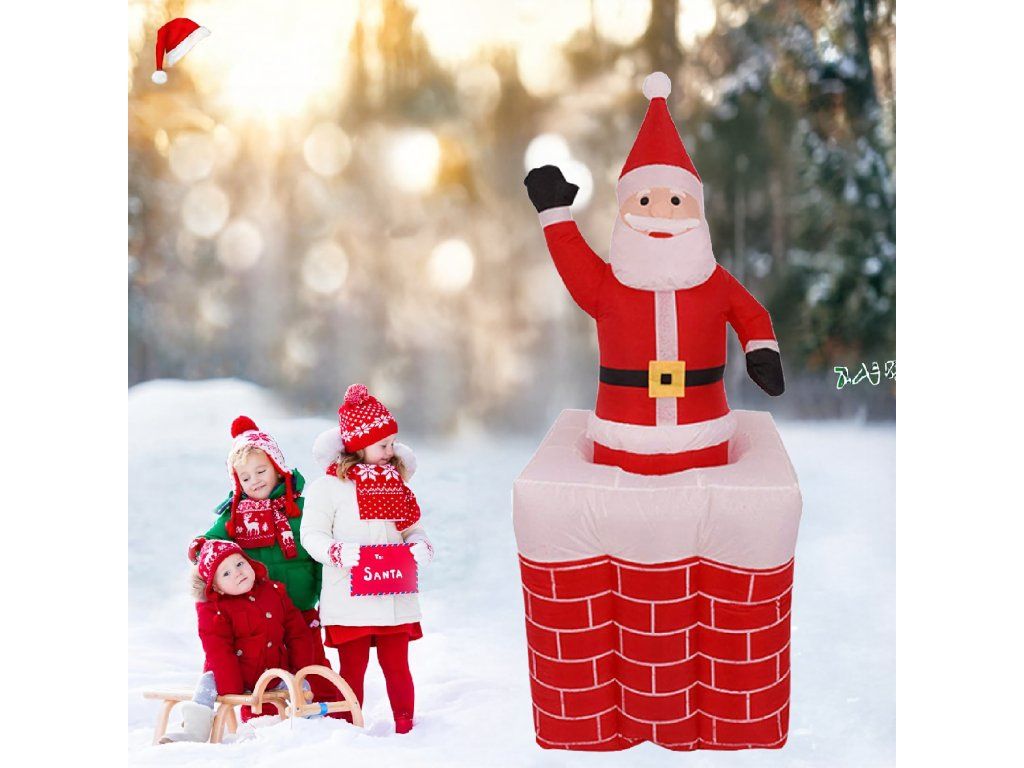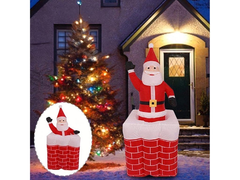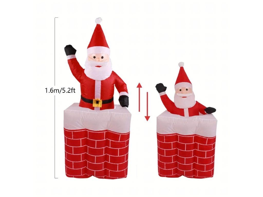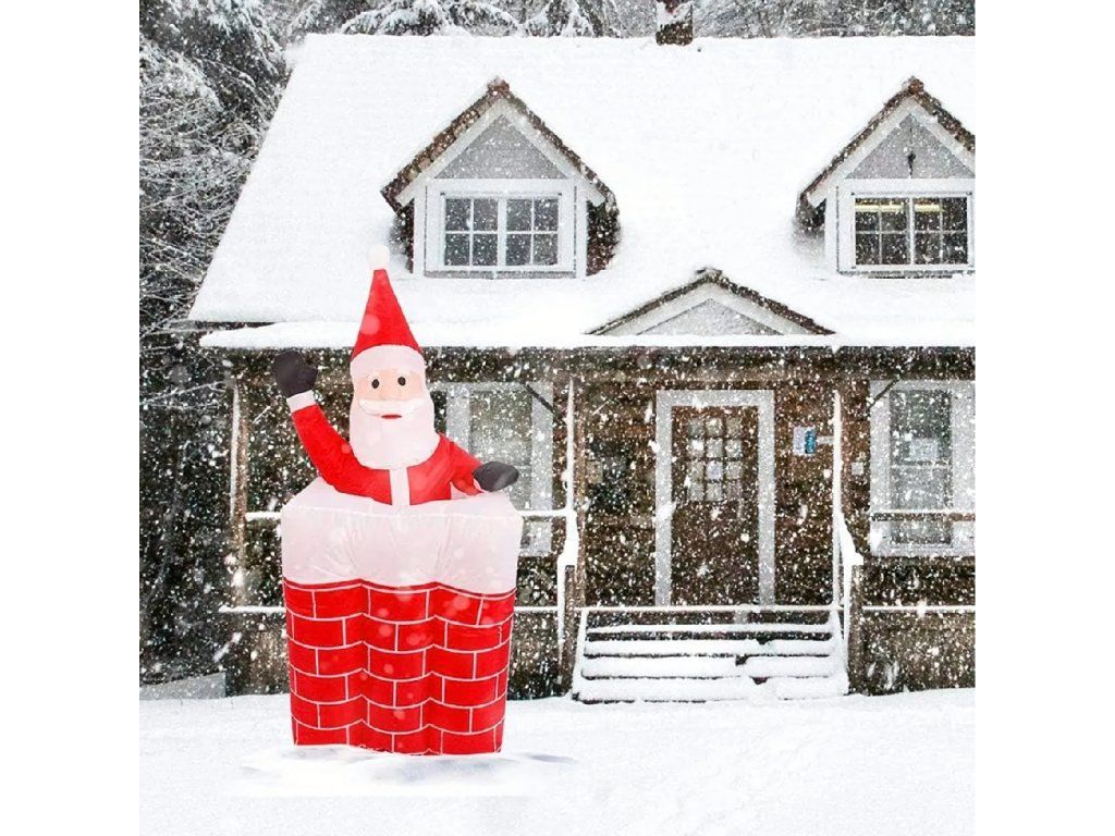 ✨Nafukovací Santa v komíně, vysouvací se, pohyblivý, podsvícený LED, 160 cm ✨