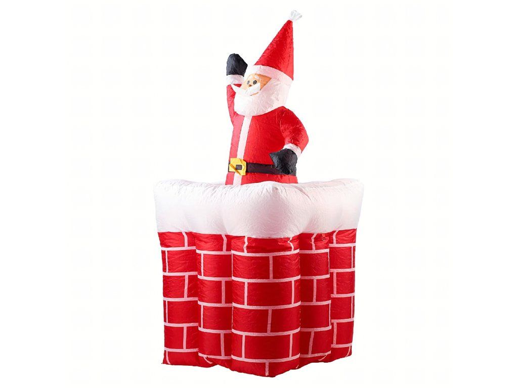 Nafukovací Santa v komíně s vysouvací hlavou, pohyblivý, osvětlený LED, 160 cm