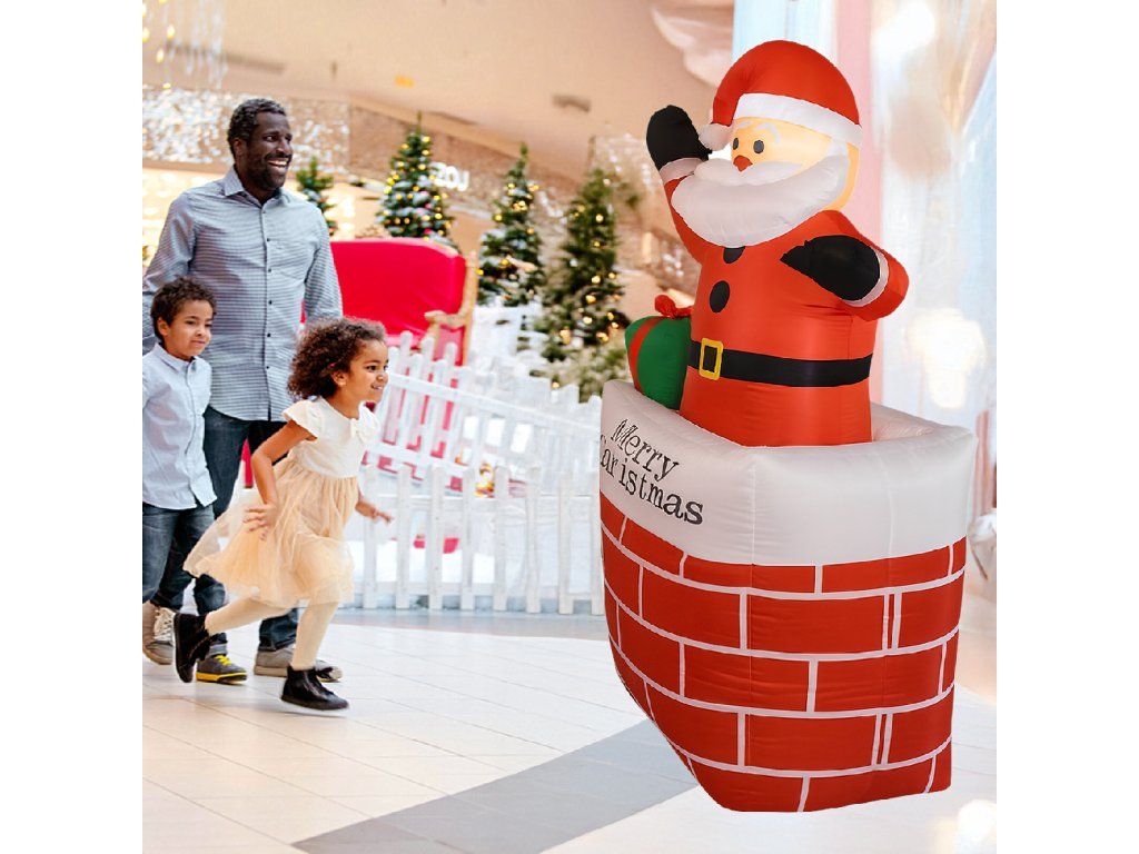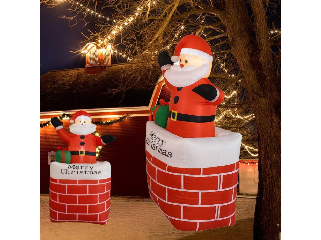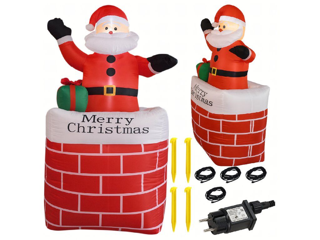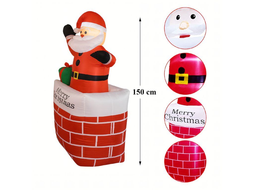 Nafukovací Santa v komíně Vánoční dekorace s LED osvětlením 150 cm