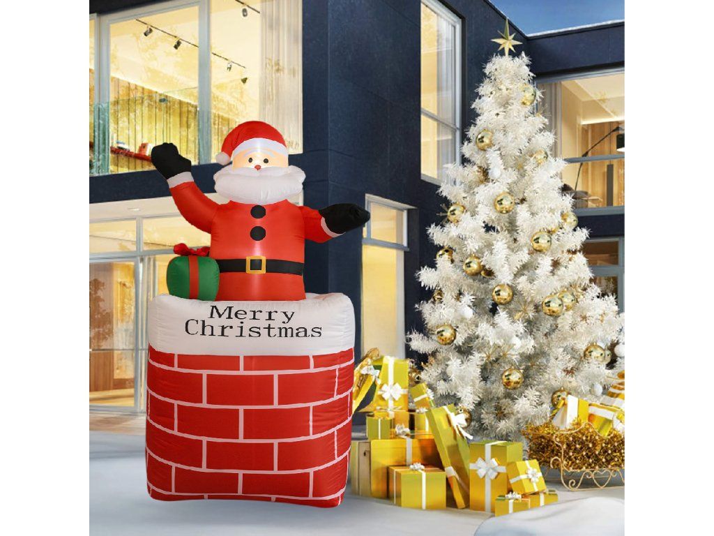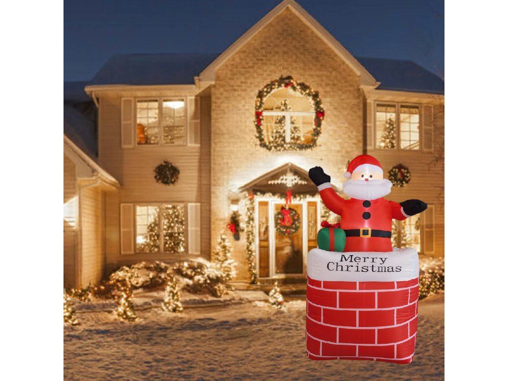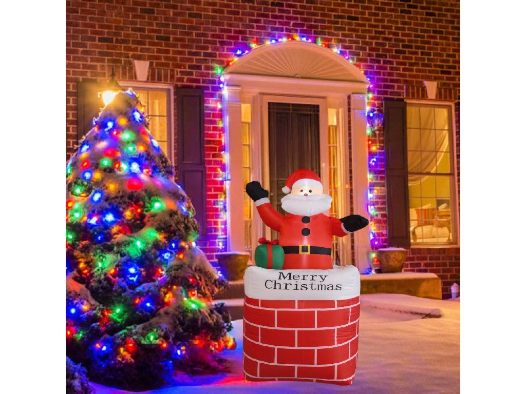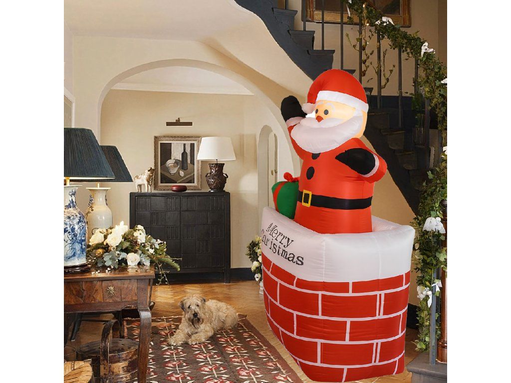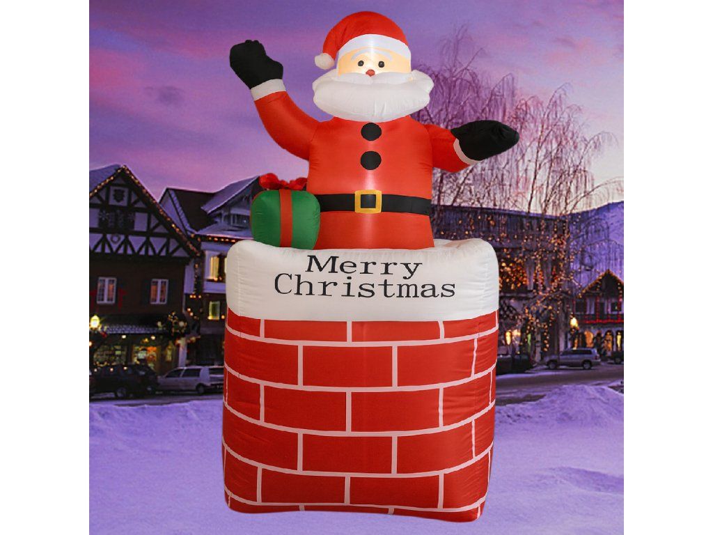 Nafukovací Santa v komíně Vánoční dekorace s LED osvětlením 150 cm