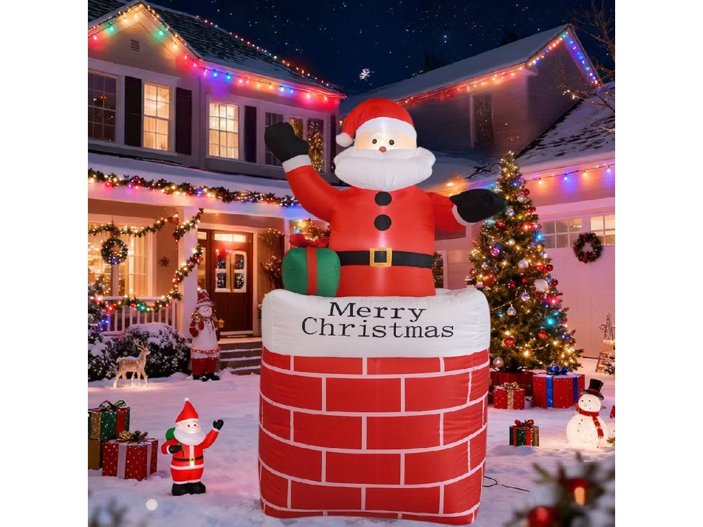 Nafukovací Santa v komíně s LED diodami 150 cm je hitem vánočních dekorací – efektní, bezpečný a snadno ovladatelný ✨