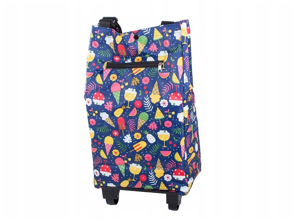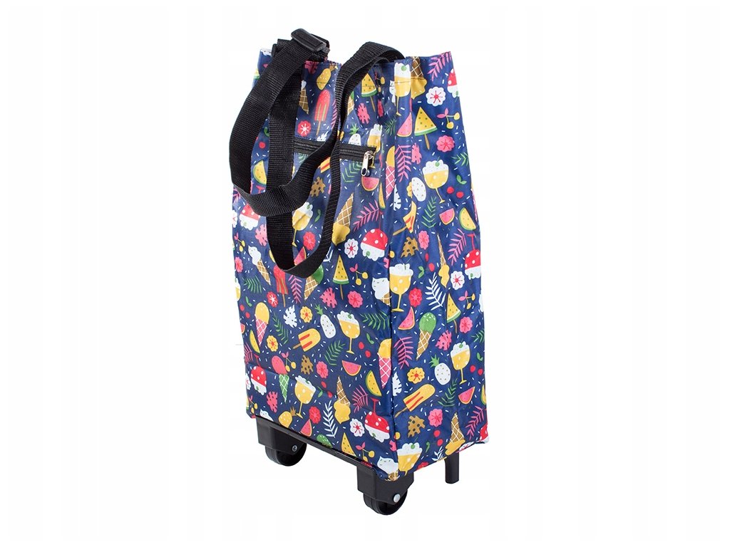 Nákupní košík, nákupní taška na kolečkách, voděodolná, modrá s motivy