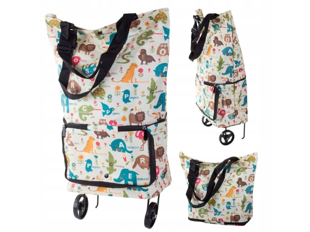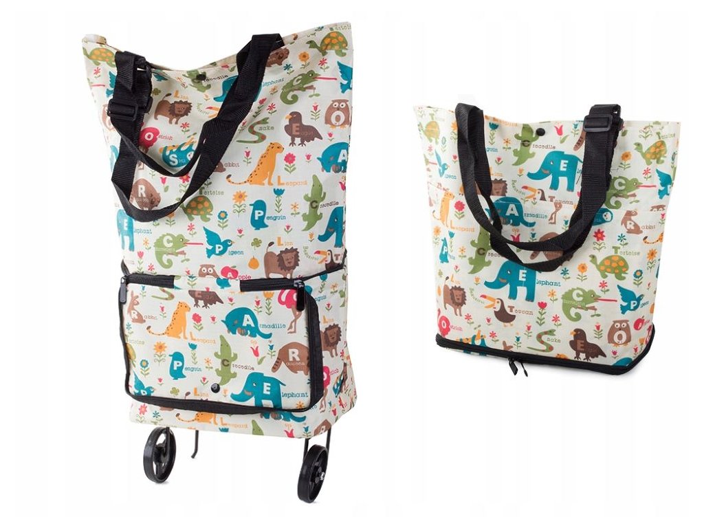 Nákupní košík, nákupní taška na kolečkách, voděodolná se zvířátky